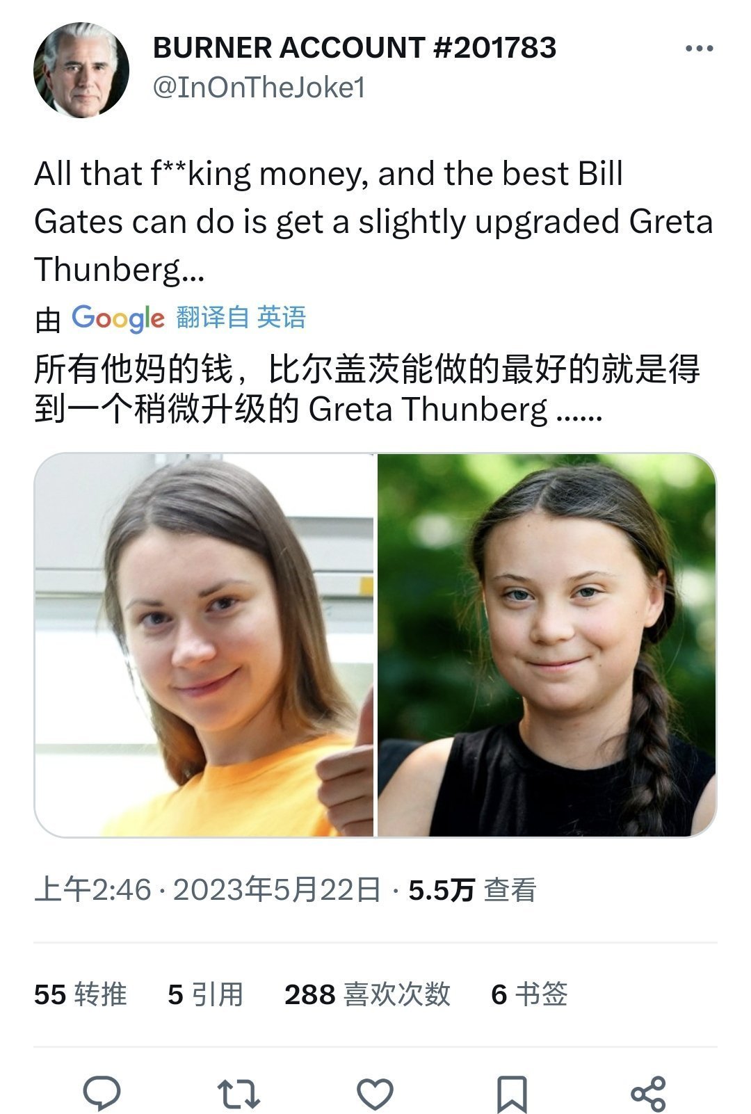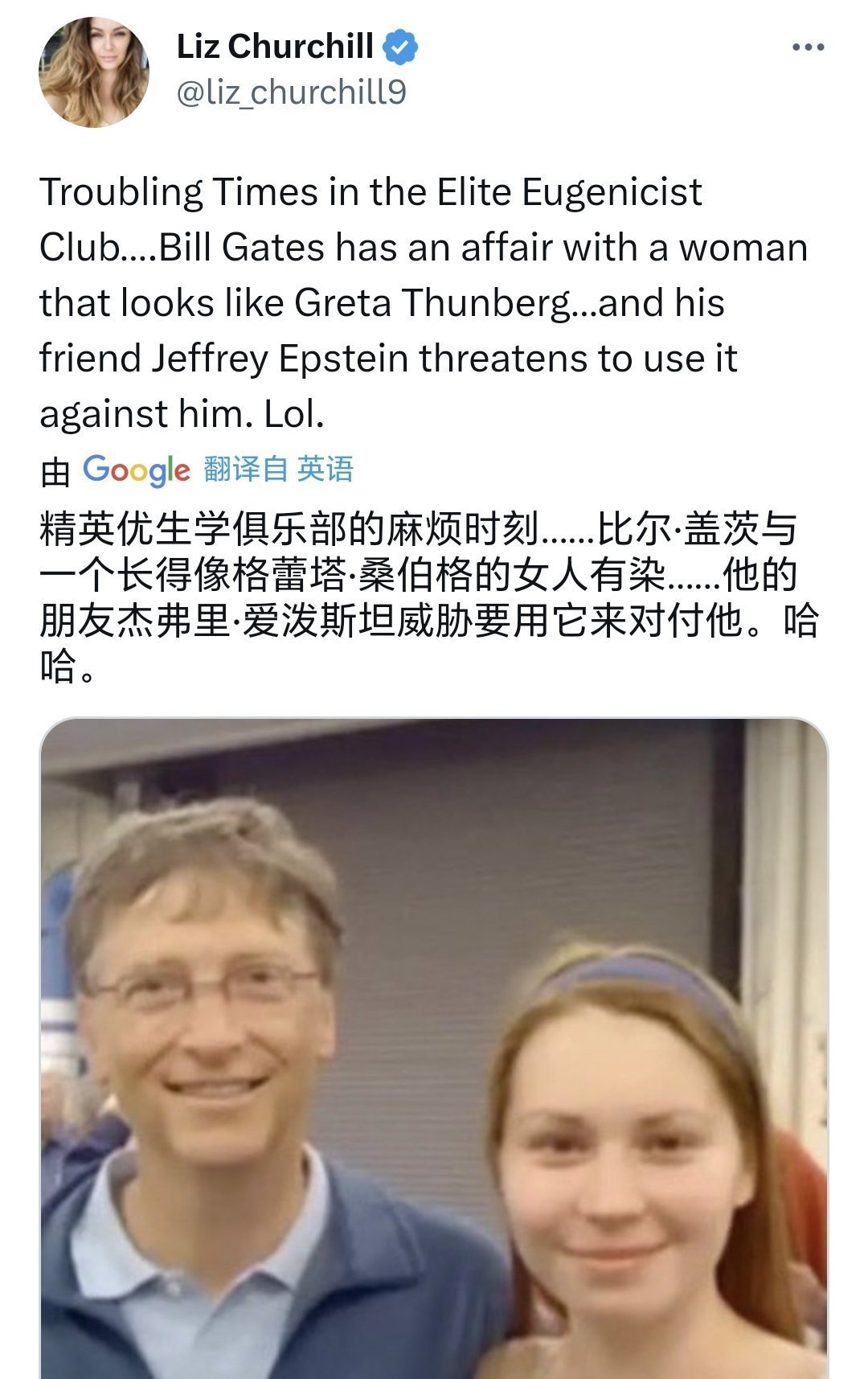 比尔盖茨这个出轨对象的照片早就在网络上疯传了,当时人们都说长得像瑞典环保少女格蕾塔。