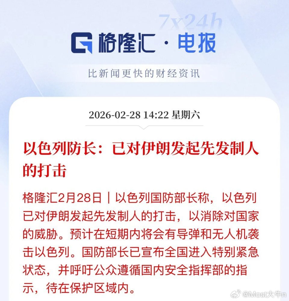 比特币大跳水跌幅4%,周一资源股又要发疯上涨了,现货黄金、现货白银一起开上高铁路了,以色列发布公告说对伊朗发布攻击了,而且是两次袭击