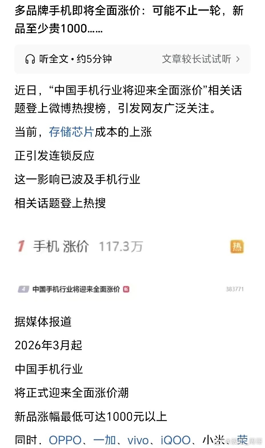 太意外了!手机可能要涨价了!