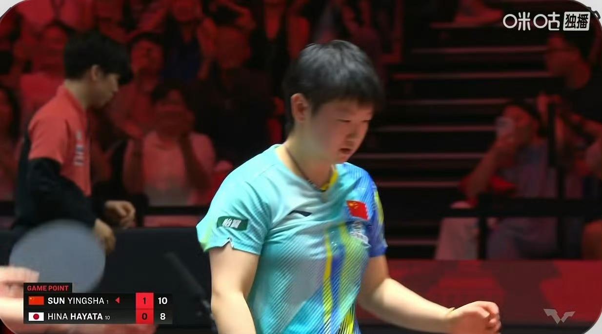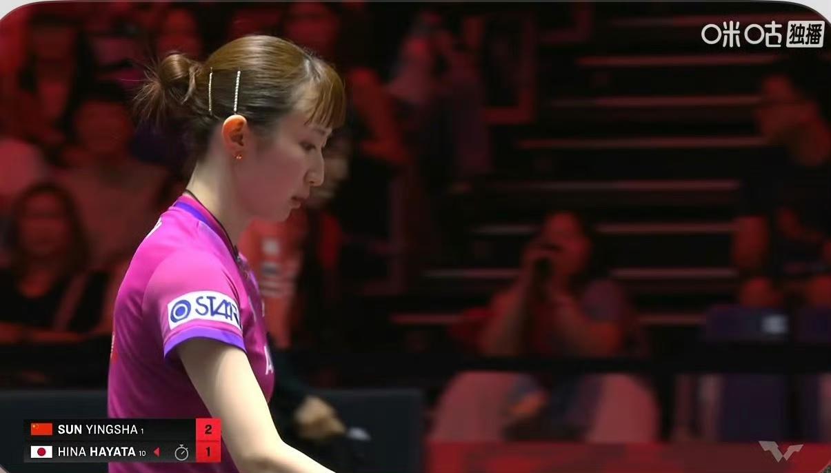 第三局莎莎有点儿分神, 前三局孙颖莎🇨🇳11-6,11-8,9-11被早田希娜🇯🇵 追回一局! 第四局开局莎莎来了个神球,全场大跑动,身体几乎滞空了,太拼了。 目前第四局莎莎5-8暂时落后! 这是一场2026WTT新加坡大满贯女单1/4决赛。 今天早田希娜是想疯啊。
