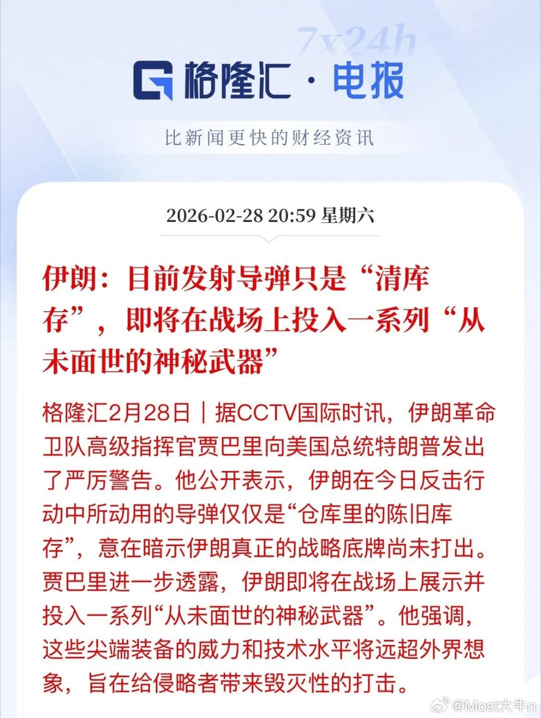 黑天鹅来袭,还是干起来了,买单肯定是要买,明天还有一天发酵,A股或许会稳点,港股或许遭受更大的压力,伊朗说现在只是在清之前的库存,已经发射导弹第七轮了,接下来就是大杀器了