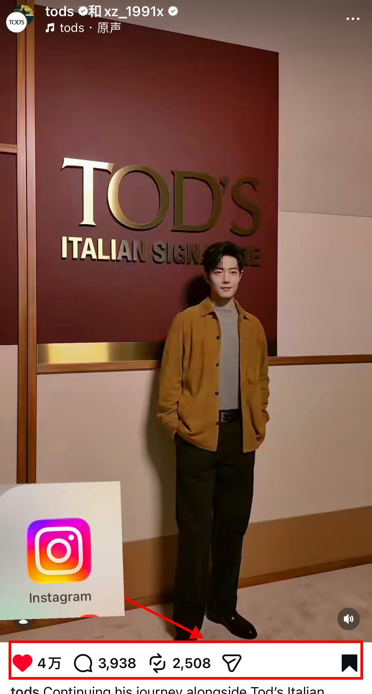 肖战和tods共创那条ig,EMV占比是最大的,很重要哦!所有人都去搞一下!多在超话发发,一直提醒!