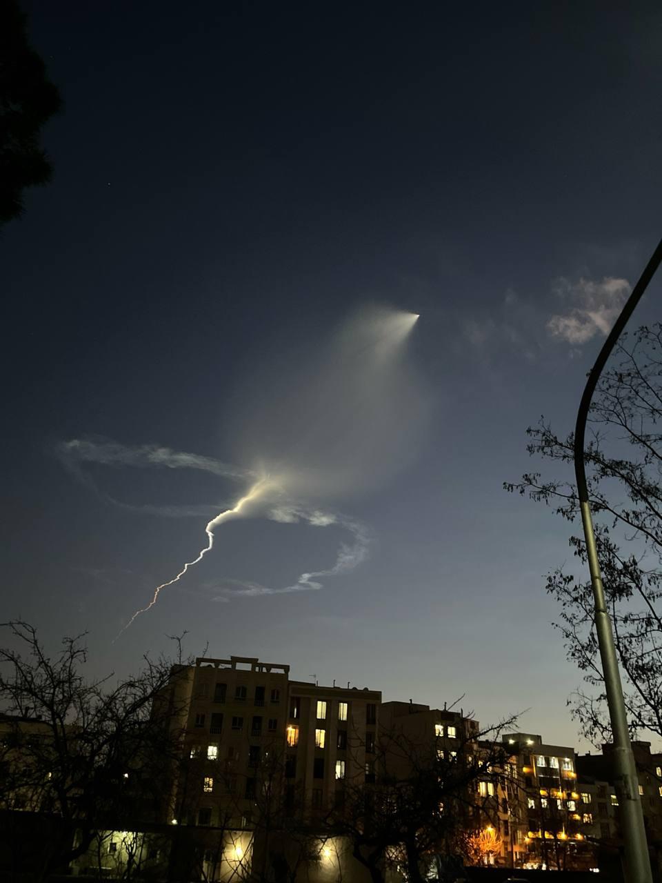 这种现象被称为“太空水母”。 当地球上的观察者处于黑暗中,而高空火箭排放的尾气仍暴露在阳光下时,尾气反射的光线会形成类似水母的形状。日出或日落时分。2月28日,星期六,伊朗