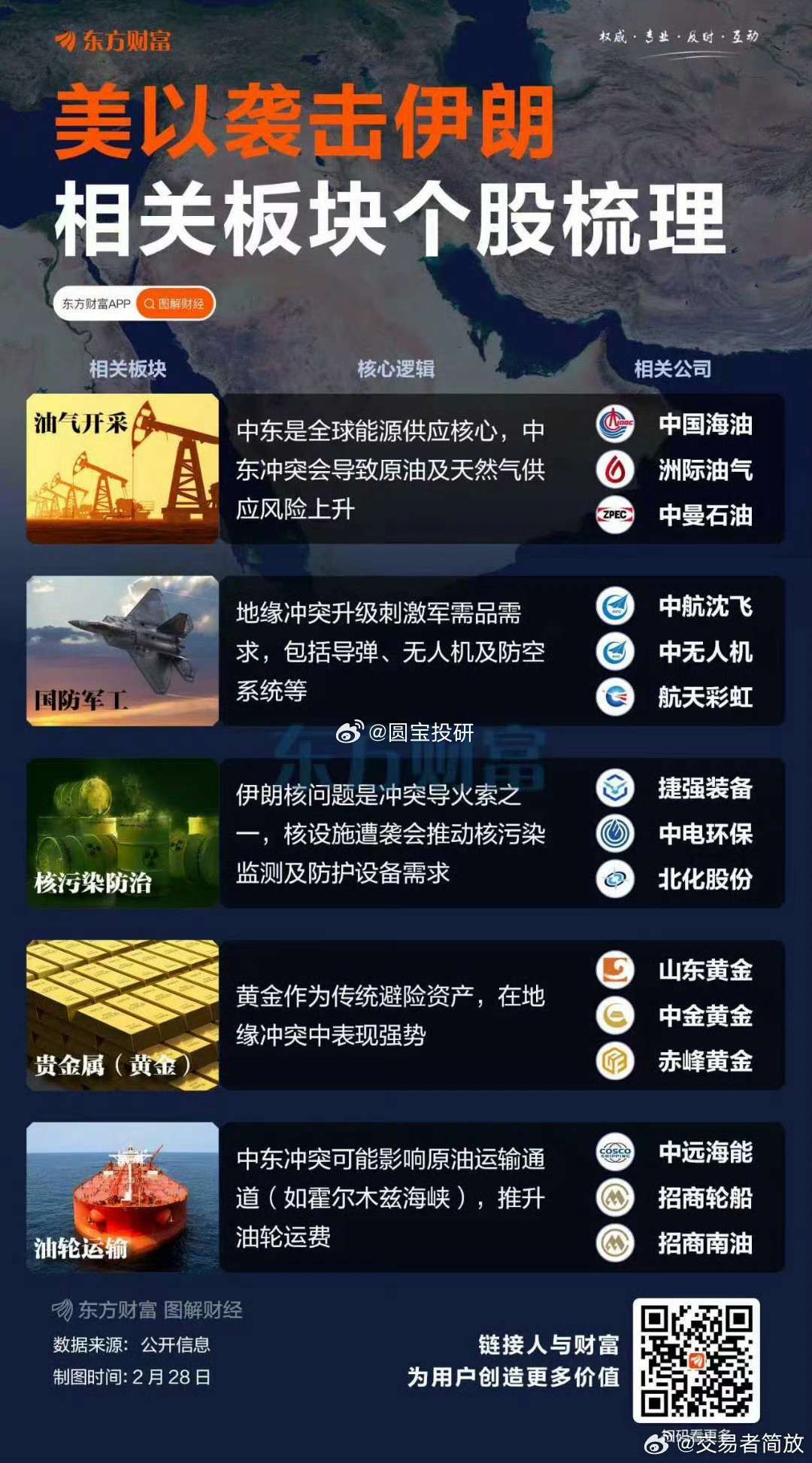 3月1日,美以伊冲突影响A股板块!!!石油、航运、军工、黄金贵金属、化工等板