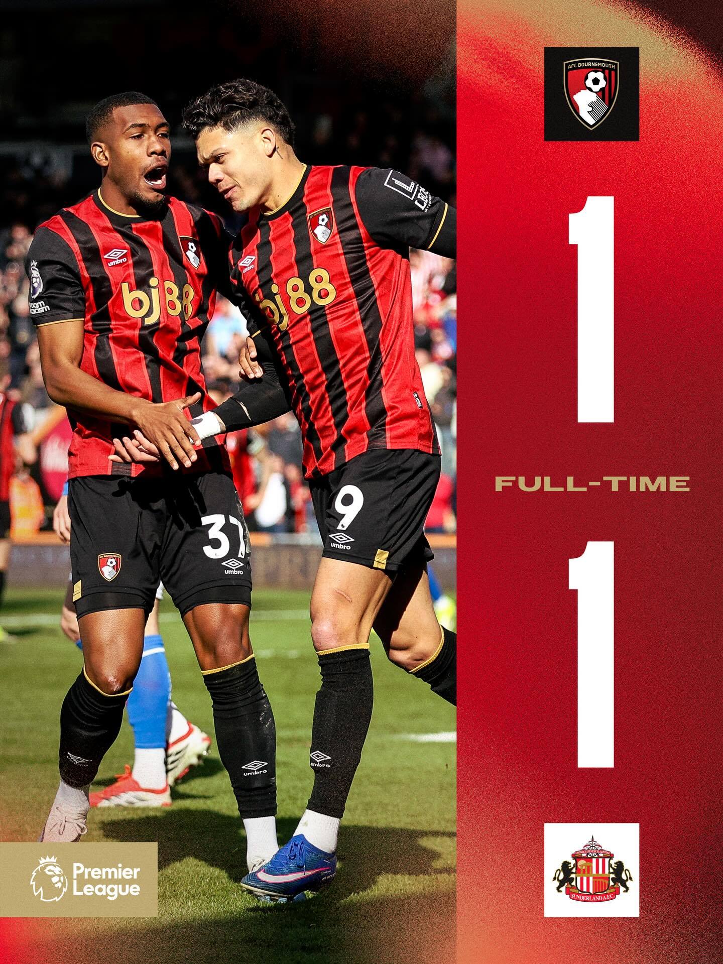 英超 伯恩茅斯主场1:1桑德兰队,阿莱克斯·希门尼斯🇪🇸首发打满全场。