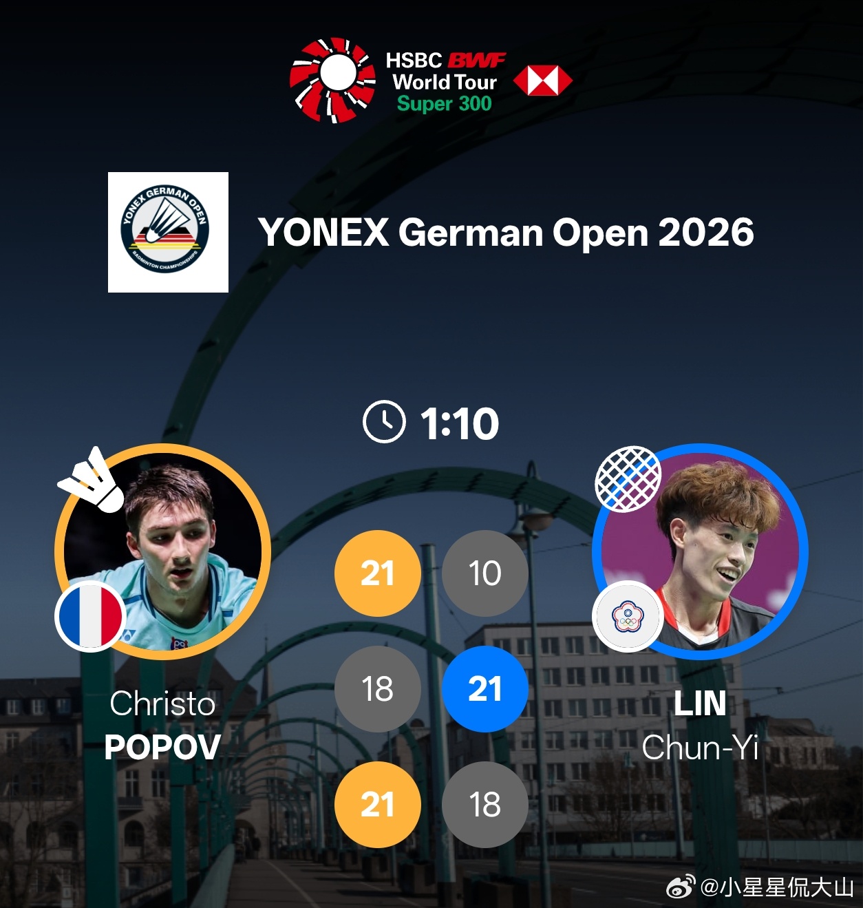 小波波夫🇫🇷 21-10、18-21、21-18 林俊易