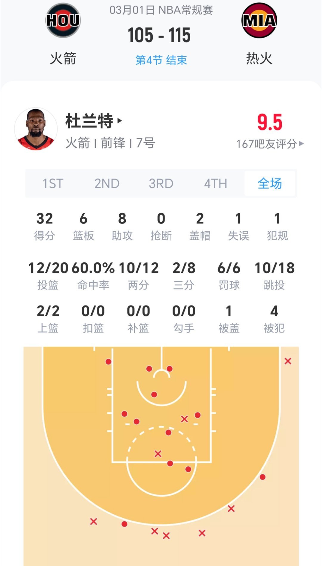 杜兰特32分6篮板8助攻2盖帽,火箭不敌热火!