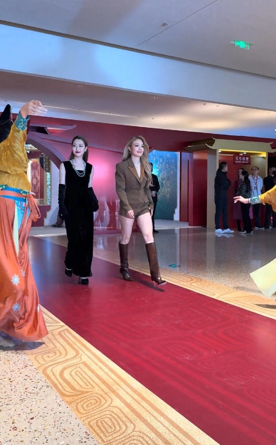 容祖儿露着又长又直的美腿,白冰穿的严严实实,但还是觉得白冰更有女人味更性感,白冰是骨子里的柔媚,哪怕穿的再严实,也挡不住由内而外散发的柔美和妩媚,肌肤白皙的白冰搭配大红唇特别明艳动人,一举一动尽显风韵!白冰