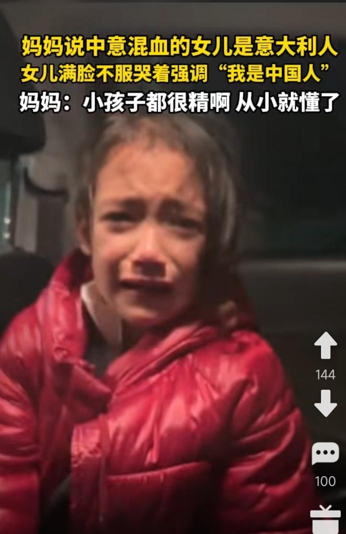 意中混血女儿,就是说自己是中国人,哭着不承认自己是意大利人。 网友说,外国小孩只要在中国待上一两年,都被汉化了,都要说自己是中国人。 而国内不少人却一味慕洋,真是围城内外有别呀。 比如甜甜圈,就是典型的例子。