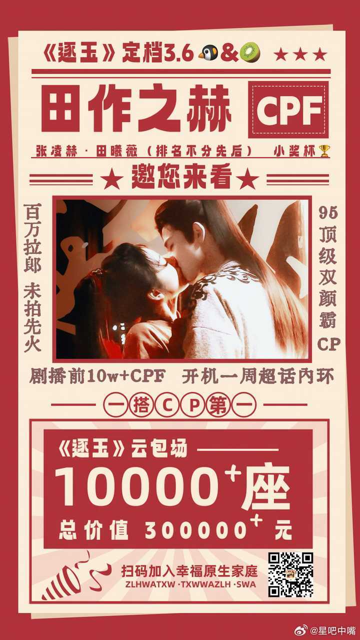 逐玉逐玉定档0306张凌赫、田曦薇“田作之赫”cp粉准备10000+座云包场,