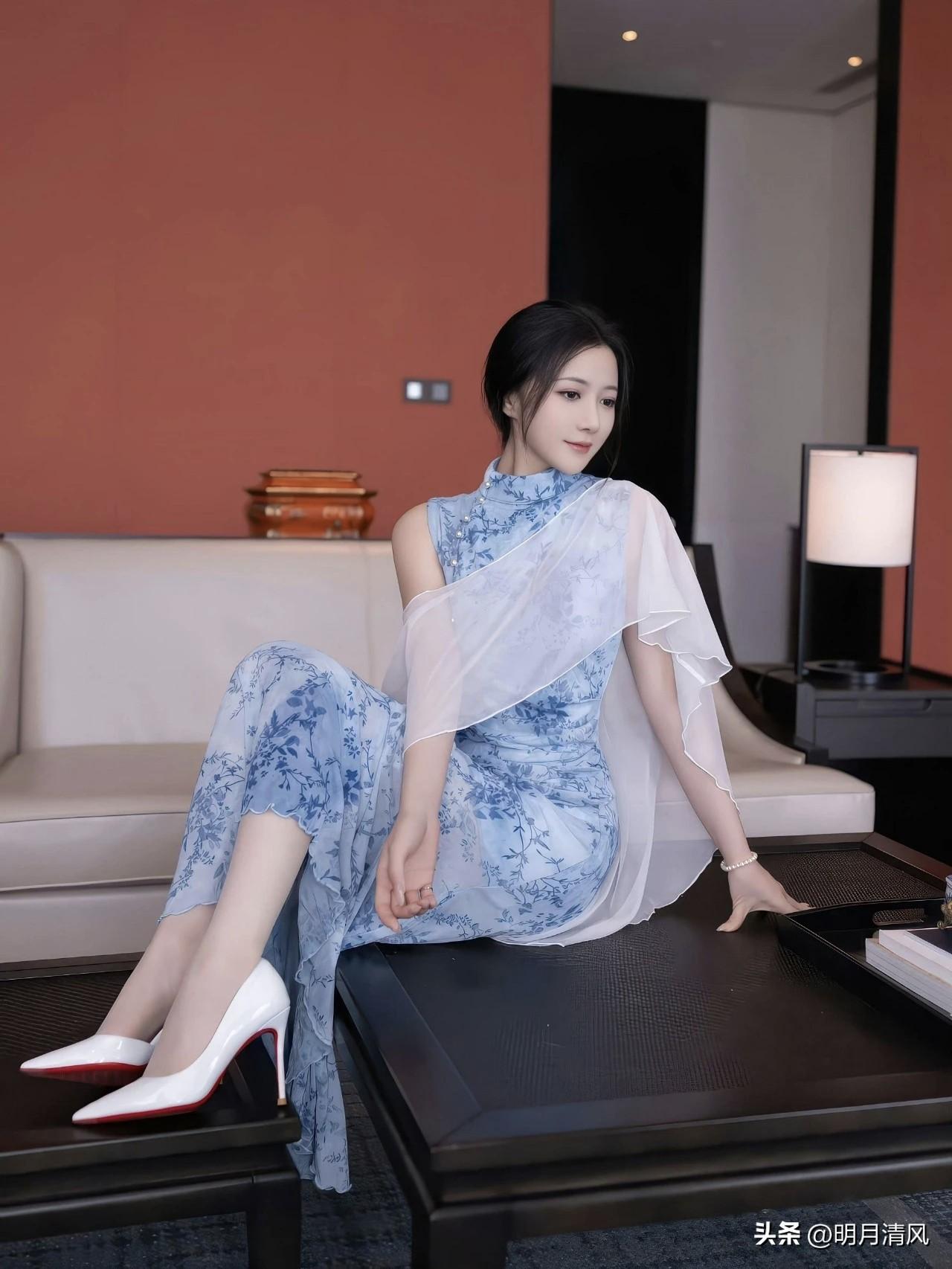 青花旗袍裙真的太有味道了!东方美直接拉满 今天必须分享一下这条让我一眼心动的旗袍裙。淡雅的蓝色调特别干净,像雨过天晴的天空,上面的青花纹样细腻又有韵味,穿上身感觉自己都变得温柔了~ 最戳我的是那个不对称薄纱披肩,轻盈飘逸,走起路来带风,仙气十足!而且它打破了传统旗袍的拘谨感,日常穿出门也不会觉得夸张,约会或者参加活动都很适合。 搭配一双白色高跟鞋,整个人就像从画里走出来的江南女子,自带一种静谧的氛围感。这种把东方韵穿在身上的感觉,真的太绝了! 你们喜欢这种新中式风格的穿搭吗?会尝试旗袍类的单品吗? 晒图笔记大赛 中式穿搭