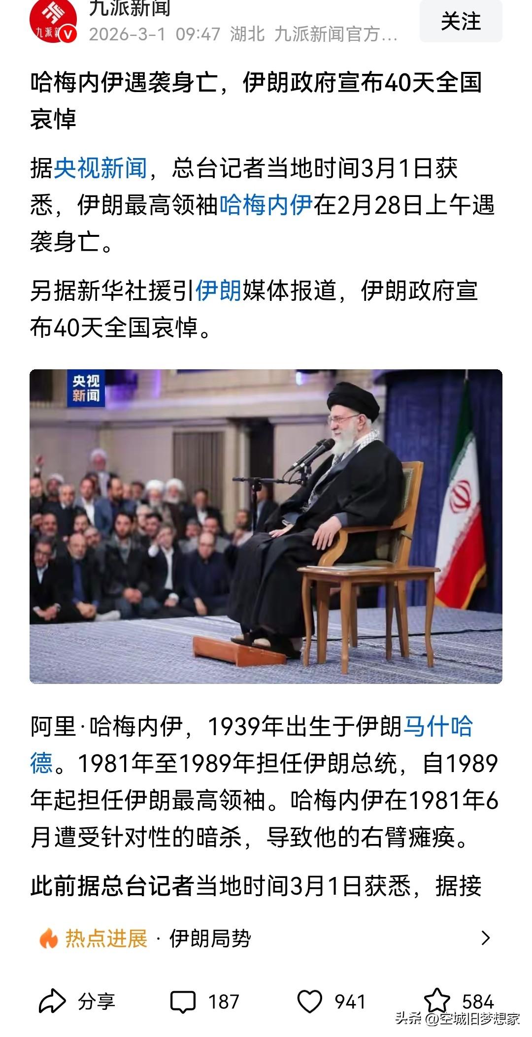 哈梅内伊已死,斩首疑云背后的警示:当叛徒比敌人更危险 果然,特朗普没有说假话。一国最高领袖,竟在第一波袭击中被精准斩首。若说身边没有内应、没有叛徒渗透,我是绝对不信的。 联想到某国去年对高层反腐的雷霆手段,如今才明白,那是在为未来的冲突扫清一切毒瘤。当敌人的导弹能精准命中核心,当领袖的行踪被轻易出卖,再坚固的防线也会从内部崩塌。 哈梅内伊的结局,又给我们上了沉重的一课:堡垒最容易从内部攻破。唯有彻底清除内奸,斩断伸向核心的黑手,才能在未来的惊涛骇浪中立于不败之地。以史为鉴,可知兴替;以邻为鉴,可明得失。 哈梅内伊遇袭 国家安全 以史为鉴哈梅内伊争议