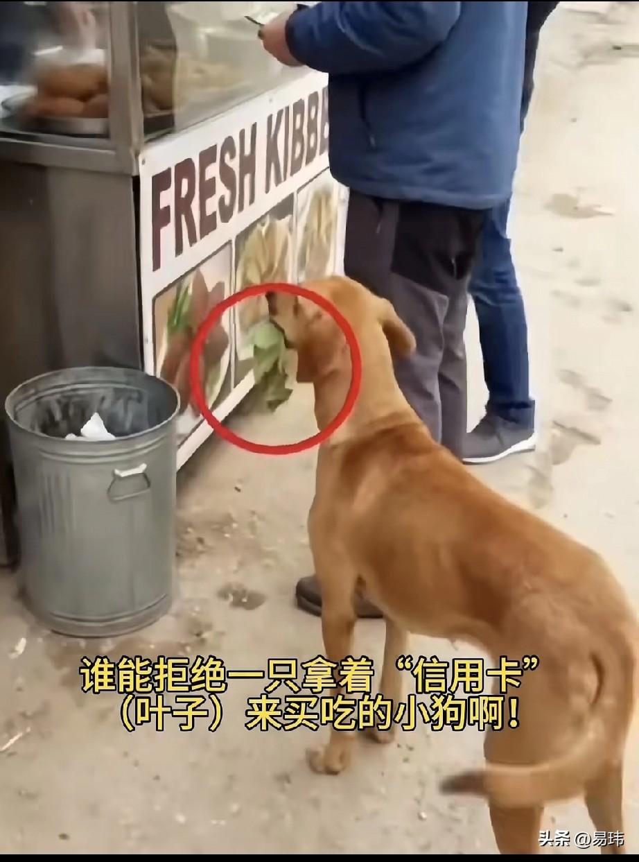 泪目了!一位大哥开了一个小吃摊,平时生意还可以。这天一只叼着一张树叶信用卡的狗狗来到他的摊位钱,踮起脚尖想要用树叶买吃的,这一幕逗得一位顾客很开心,他却没有给狗狗食物。只是逗逗它,故意用食物馋它。 而待它走后,狗狗乖乖的站在摊位前等待,眼巴巴地盯着锅里的丸子,这一刻我甚至觉得它在比价,想要挑选好的食物,善良的摊主看到这一幕,心都化了,直接大手一挥给它满上,然后接过它的树叶,放进皮夹,狗狗真的做到了以叶换肉,狗狗的生存智慧拉满了!不过这也是大哥的善良!