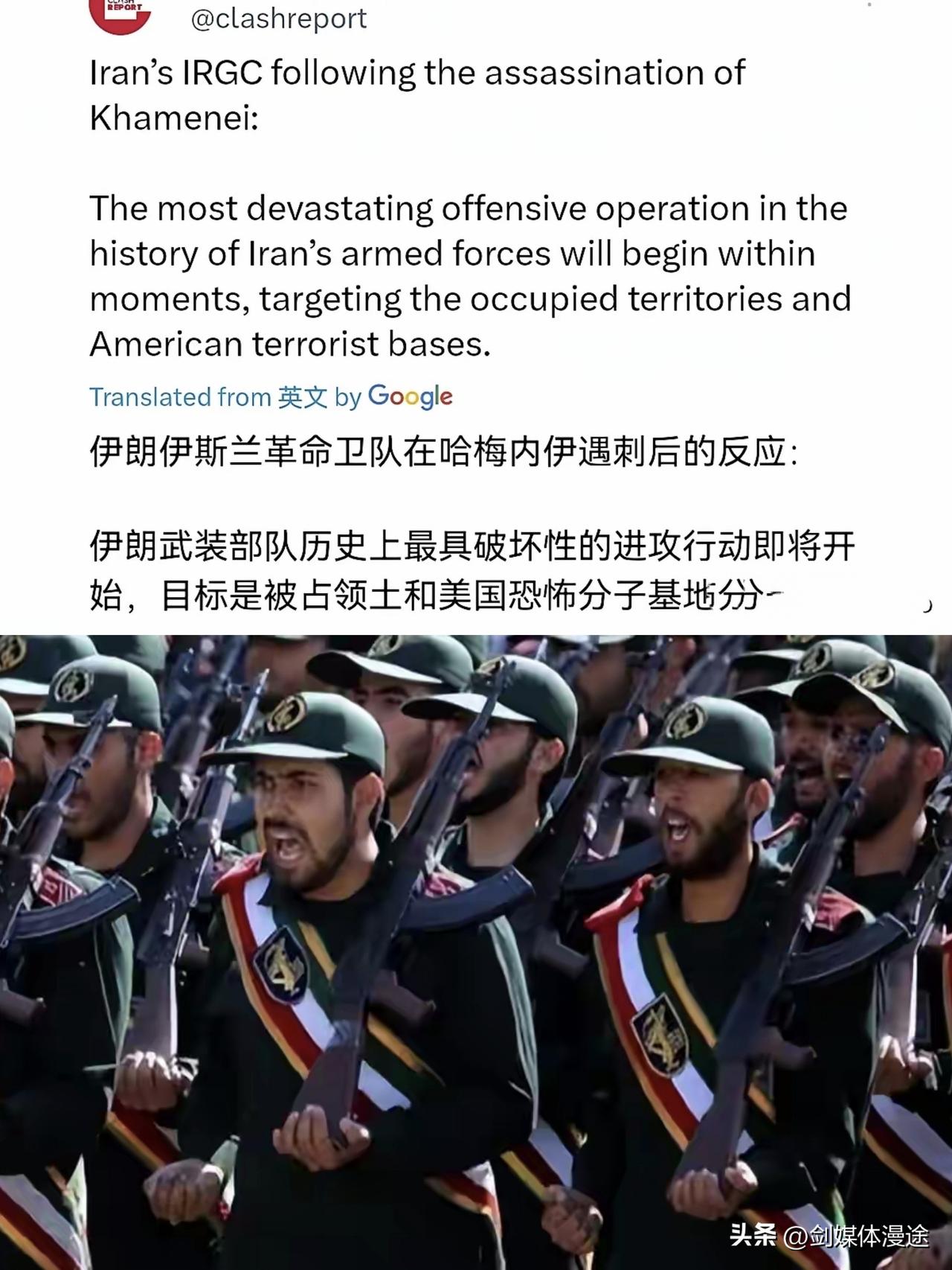 伊朗革命卫队盘点 2 月 28 日的对美军战绩: 1:伊朗导弹击中 印度洋地区一艘为美军舰艇运送弹药的船只 2:一艘在印度洋为美军舰艇运送燃料的美军舰艇也被伊朗导弹击中 3:伊朗 4 枚导弹 12 架无人机 袭击了美国在科威特的海军基地,同时美军舰艇则被伊朗“卡德尔-380”导弹击中!同时美国在科威特海军基地的袭击导致其所有基础设施完全被毁,并造成“大量”美军人员伤亡(200 人以上) 但随着伊朗最高领袖哈梅内伊遇害被公布出来之后,美军这些伤亡都比不上一个哈梅内伊的力量,为此伊朗表示,伊朗不可能对美国和以色列屈服!哈梅内伊死亡之后,伊朗革命卫队发出怒吼! 3月1日,伊朗革命卫队发表声明称,伊朗武装部队历史上最具破坏性的进攻行动将在几分钟内开始,目标是被占领土和美国恐怖分子基地。很显然,在最高领袖,革命卫队,军方,情报系统均遭受重创的背景下,伊朗革命卫队发出了坚定的怒吼。
