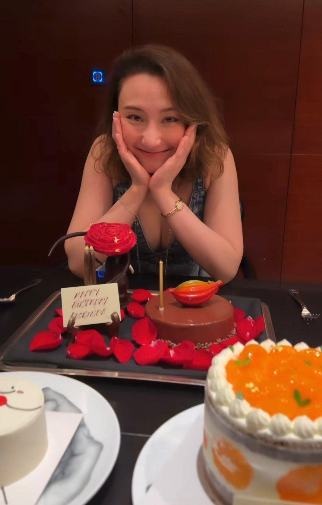 赌王三房女儿何超云庆祝37岁生日,派对上,何超云穿了一件深v牛仔短裙,秀出好身材!
