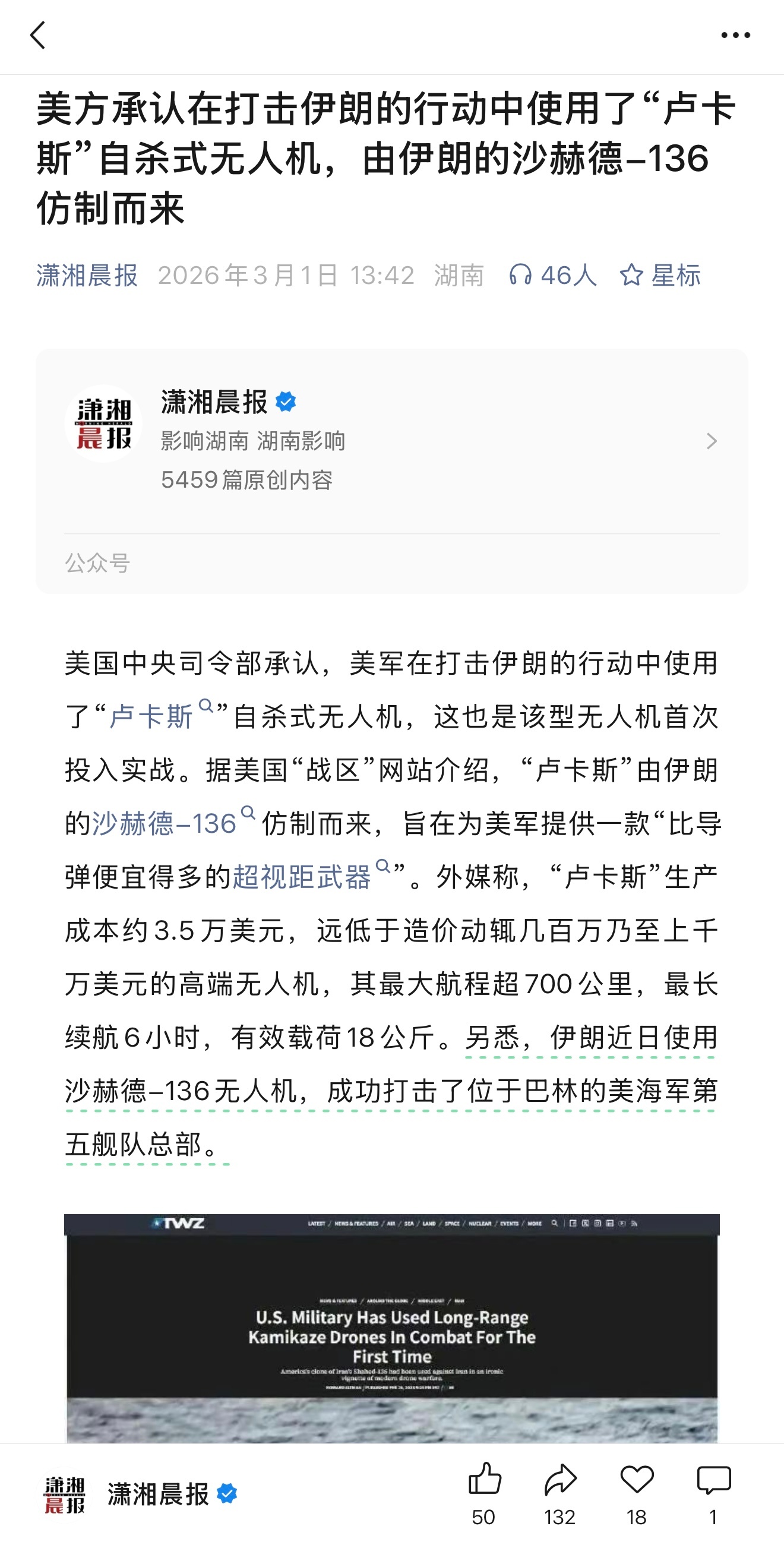 刚看到的消息,阿曼湾那边出大事了。美军中央司令部3月1日发布,他们在军事行动里