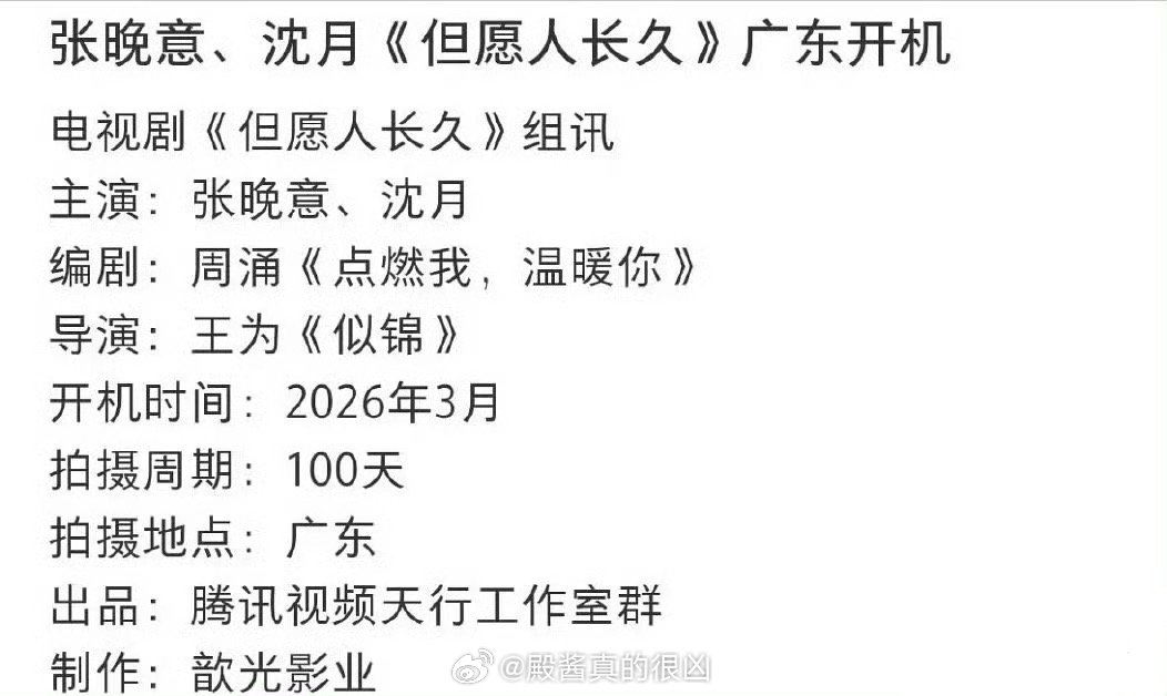 张晚意、沈月但愿人长久3.8佛山开机看样子晚意粉还是没撕掉女主