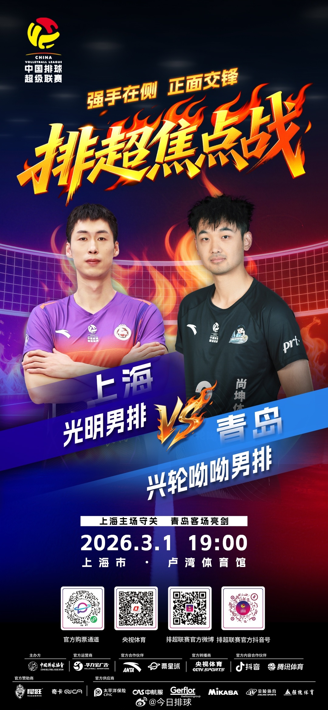 2025-2026中国男排超级联赛 A级季后赛总第16轮,北京时间今晚19:00,D组的上海光明将在主场迎战青岛兴轮呦呦。