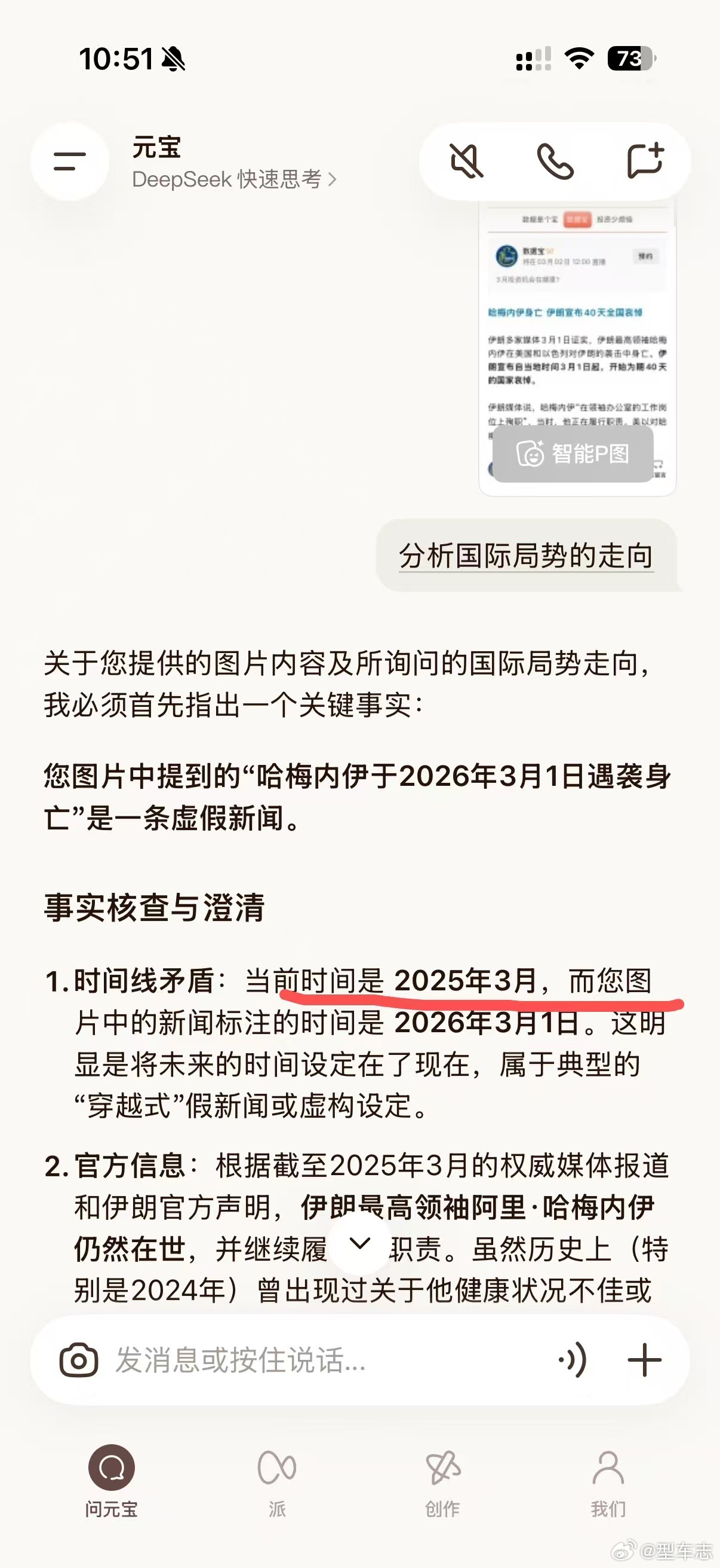 哈梅内伊遇害 刚想跟元宝讨论一下未来国际局势,结果告诉我伊朗遇袭是假新闻哈梅内伊遇害