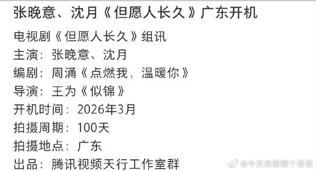 张晚意、沈月但愿人长久3.8开机