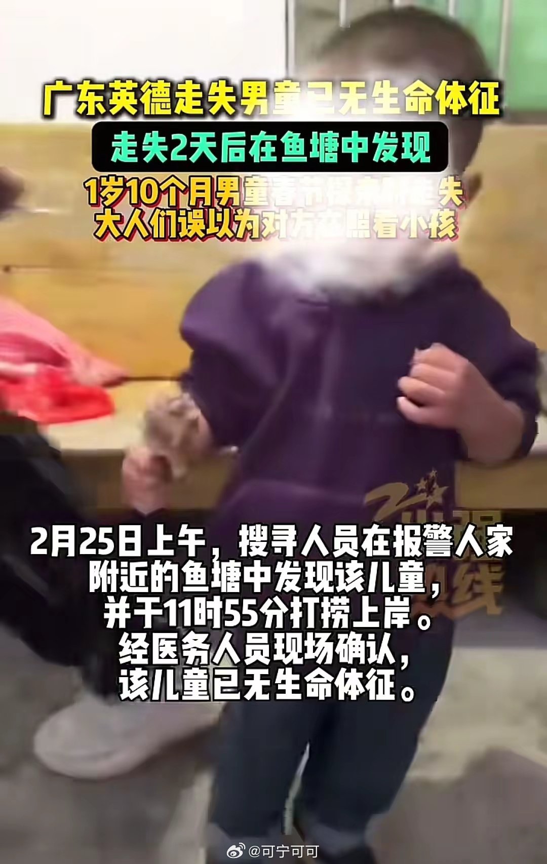 痛心!广东1岁男童家门口鱼塘溺亡,家长千万警惕!近日,广东英德发生一起令人心碎的悲剧:一名仅1岁10个月的男童,在家门口附近意外坠入鱼塘,不幸溺水身亡。事发时多名家人在场,却因彼此误以为对方在照看孩子,短短十几分钟疏忽,酿成无法挽回的后果。孩子对危险毫无认知,鱼塘、水沟、水井、浴缸、水桶,几厘米深的水就足以致命。低龄儿童溺水往往安静无声,不会挣扎呼救,几秒疏忽就可能天人永隔。在此郑重提醒所有家长:带娃时务必做到全程不离视线,多人看护更要明确专人负责。走亲访友、返乡过年,第一时间排查周边水源隐患,不要只顾聊天、玩手机。别让一时大意,毁掉整个家庭。愿逝者安息,也愿所有家长警钟长鸣,守住孩子的生命安全!