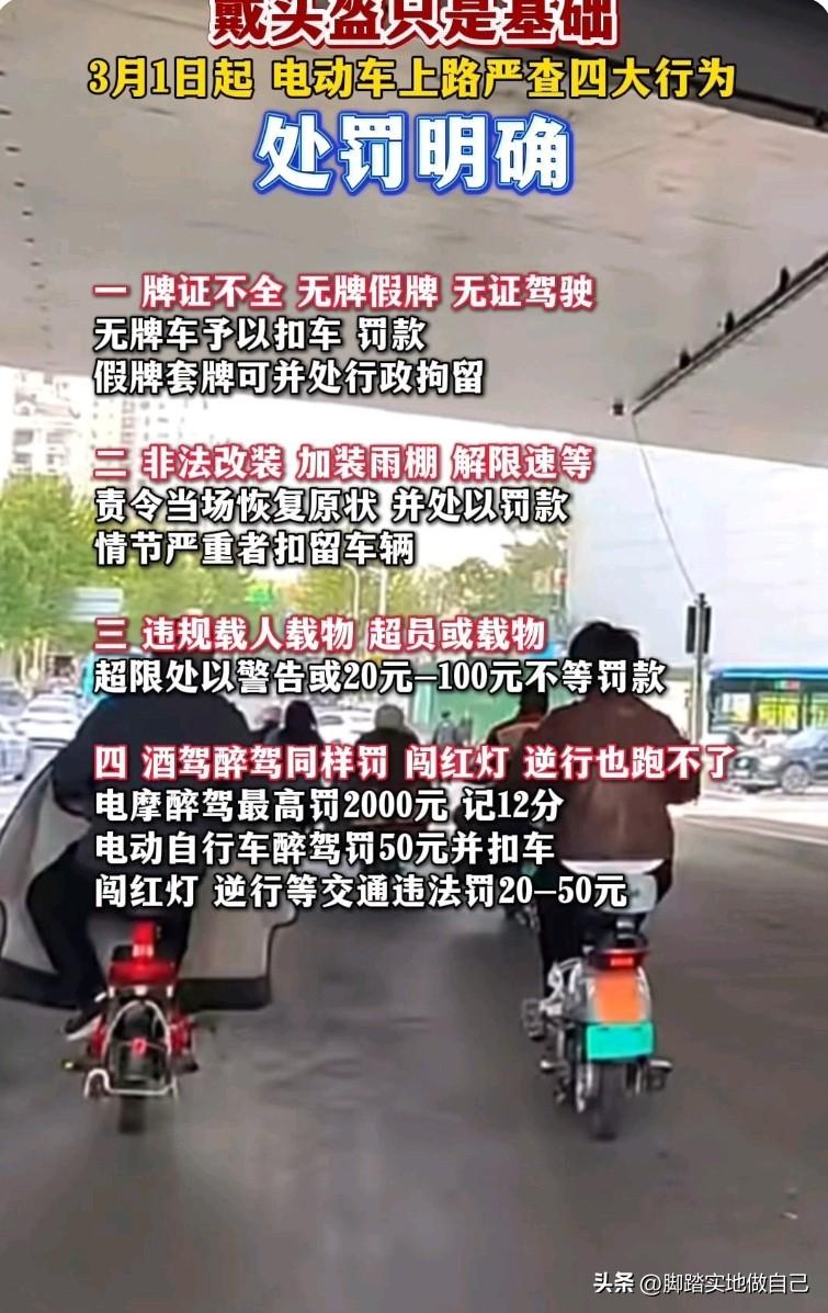 🚨3月1日起电动车严查!4类行为直接罚,全国多地已落地! 骑电动车的家人们注意了!2026电动车长效管理办法正式实施,城乡全域无死角查,定点检查+电子抓拍双管齐下,学校/商圈/小区周边都是重点,这4件事千万别做,罚钱扣分没商量! ❶ 改装车别骑了!加装遮阳棚、换大功率电池、解限速,抓到罚50还得恢复原状,拼装车直接收缴,商家改装卖车罚更狠! ❷ 停车充电别任性!楼道停、飞线充、进电梯,拒不整改最高罚500,屡教不改直接5000,小区管理不到位也得罚1万! ❸ 无牌无证别上路!新国标电车无牌首次警告再犯罚50,假牌套牌200;电摩无牌200-500,无证驾驶最高2000+15天拘留,C1开电摩还记9分! ❹ 骑行别搞危险操作!逆行、闯红灯、走机动车道一律罚50,载人载物违规20-50;不戴3C头盔先警告后处罚,酒驾电摩直接罚1000-2000+记12分,醉驾还得负刑责! 划重点!电动车必须符合新国标(车速≤25km/h、车重≤55kg),非标车过渡期过了直接禁行,常态化执法可不是说说而已,赶紧自查,别踩坑! 电瓶车新规 违规骑电动车 吐槽电动车新规 电瓶车新国标 电动车必知交规 严查严控电动车 严查三轮电动车 违规骑行电动车 深圳禁止电动车 电动车整治建议 电动车国标新规 电瓶车违法行为 两轮电动车新规 电动车上牌政策 浙江严查电动车