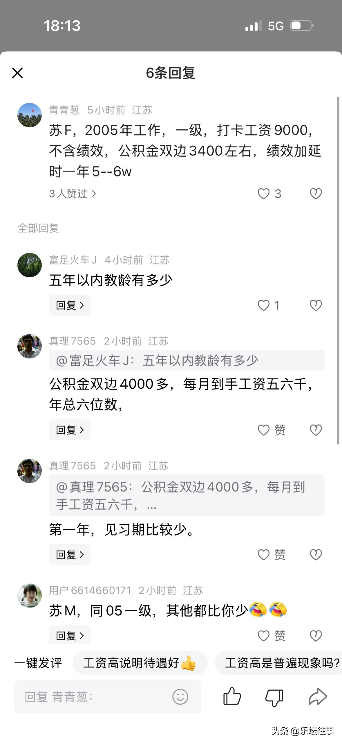 江苏中小学教师工资,引发的留言: 1、苏F,2005年工作,一级,打卡工资9000,不含绩效,公积金双边3400左右,绩效加延时一年5--6w。 2、我感觉都不止这些,我12年毕业,我昆山同学入编当地中学老师,她那时候公积金一个月都三千多好像。 3、正常情况下五年是不到一级的除非是研究生毕业!我工作30多年打卡工资不到11000! 4、26年教龄,六级,含绩效,打卡刚1字头。 5、苏J。1999年工作。副高,打卡8578 6、苏k,2001年工作,副高职称,上卡工资8000 来自网友留言。