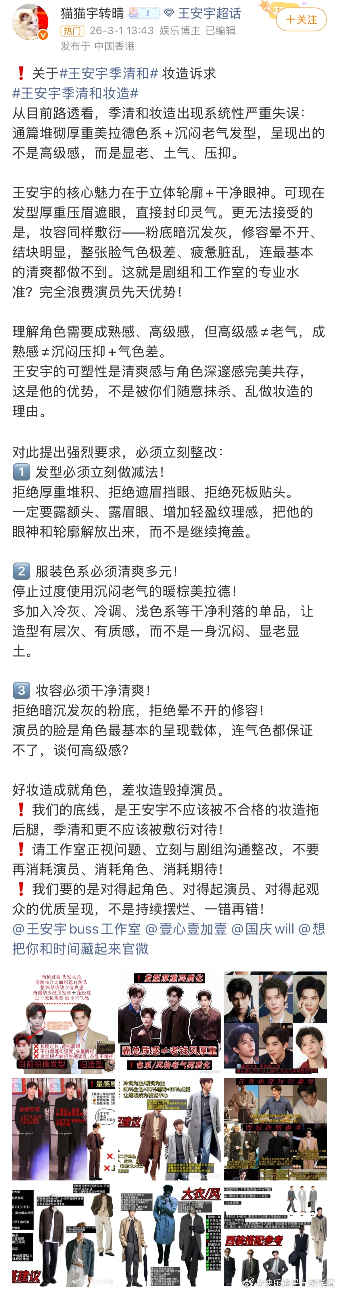 王安宇粉丝对于新剧《把你和时间藏起来》妆造进行维权
