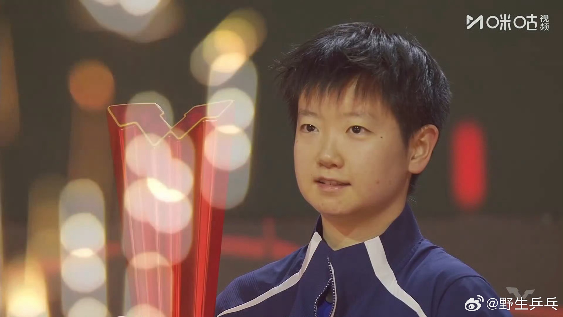 孙颖莎捧起奖杯时刻
