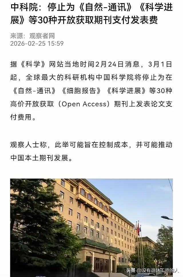 以前有点奇怪,为什么我们的科学家有了科研成果,首先是发表在国外的顶级期刊上,而不是在国内。 其中有一种解释说:国内的科研机构或者是大学的教育评价体系,是要求在这些国际上的期刊发表多少论文,才能评教授或者高级职称。 你水平再高,论文不达标,一样的评不上。 而在这些国际期刊上发表论文,不是你能够得到多少稿费,反而是要作者出版面费。 一般都是三到五万元左右。 现在,从3月1号起,中科院停付天价版面费。不是禁止学者发表海外论文,而是倒逼国内学术,回归理性,扶持自己的期刊。 学术的出版,初心是共享知识,推动创新,而不应该成为商业资本收割科研资源的工具。 支持,支持再支持。 我们有底气说“不”了。 高校科研评价 科研的本质 科研前沿解读 学术研究方法 科研学 科研哲学 中国科研机构