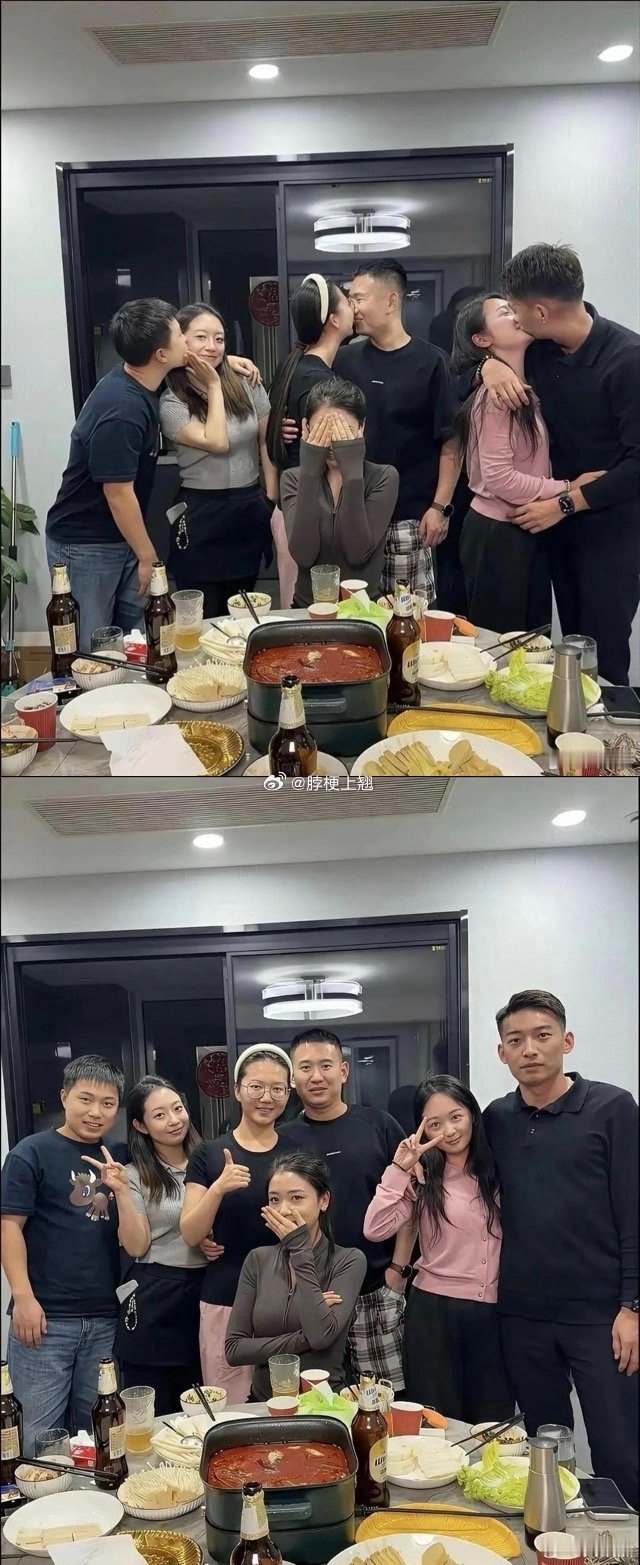 知道的是亲自己媳妇,不知道的还以为是同学聚会