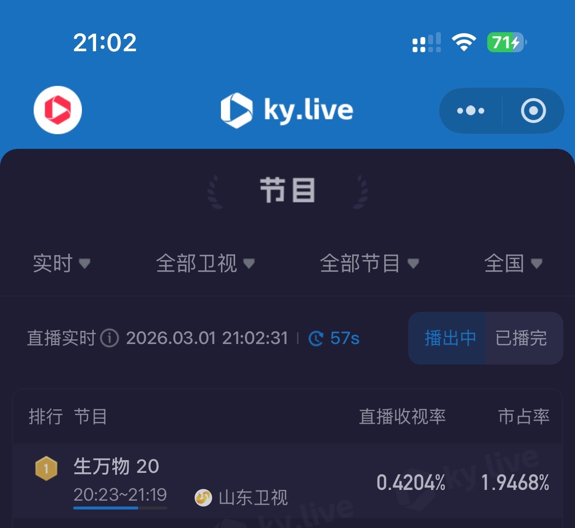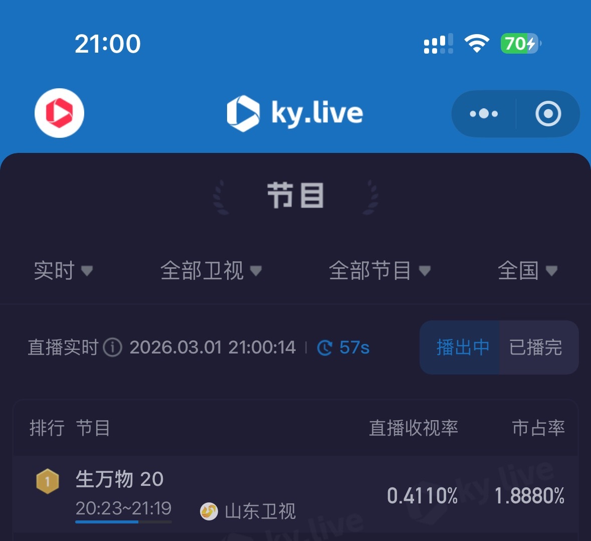 杨幂生万物生万物第20集收视率永远的神山东卫视今晚酷云收视一直在涨📈太牛了