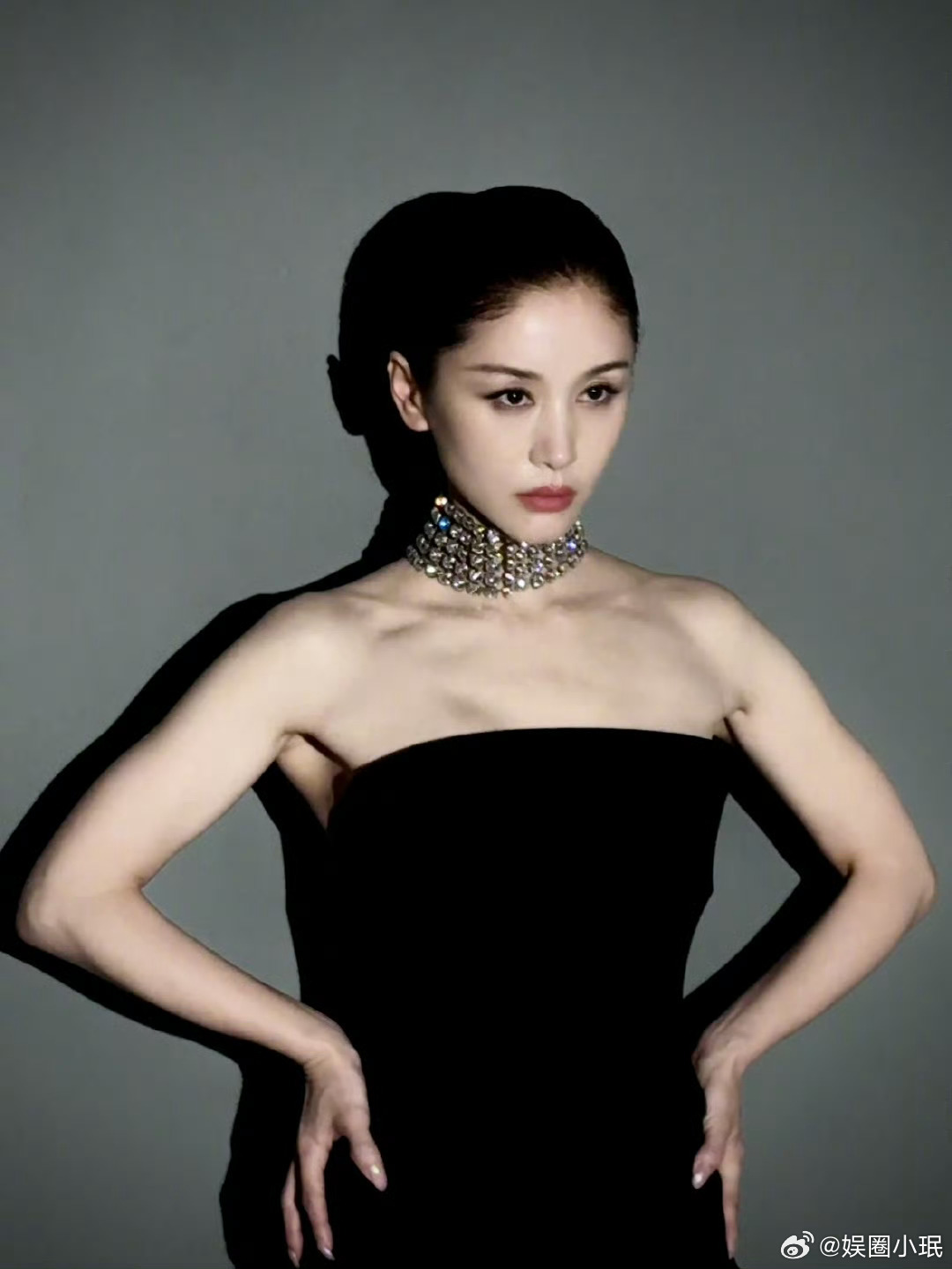 王子文内娱稀缺的娇熟感王子文黑色抹胸裙