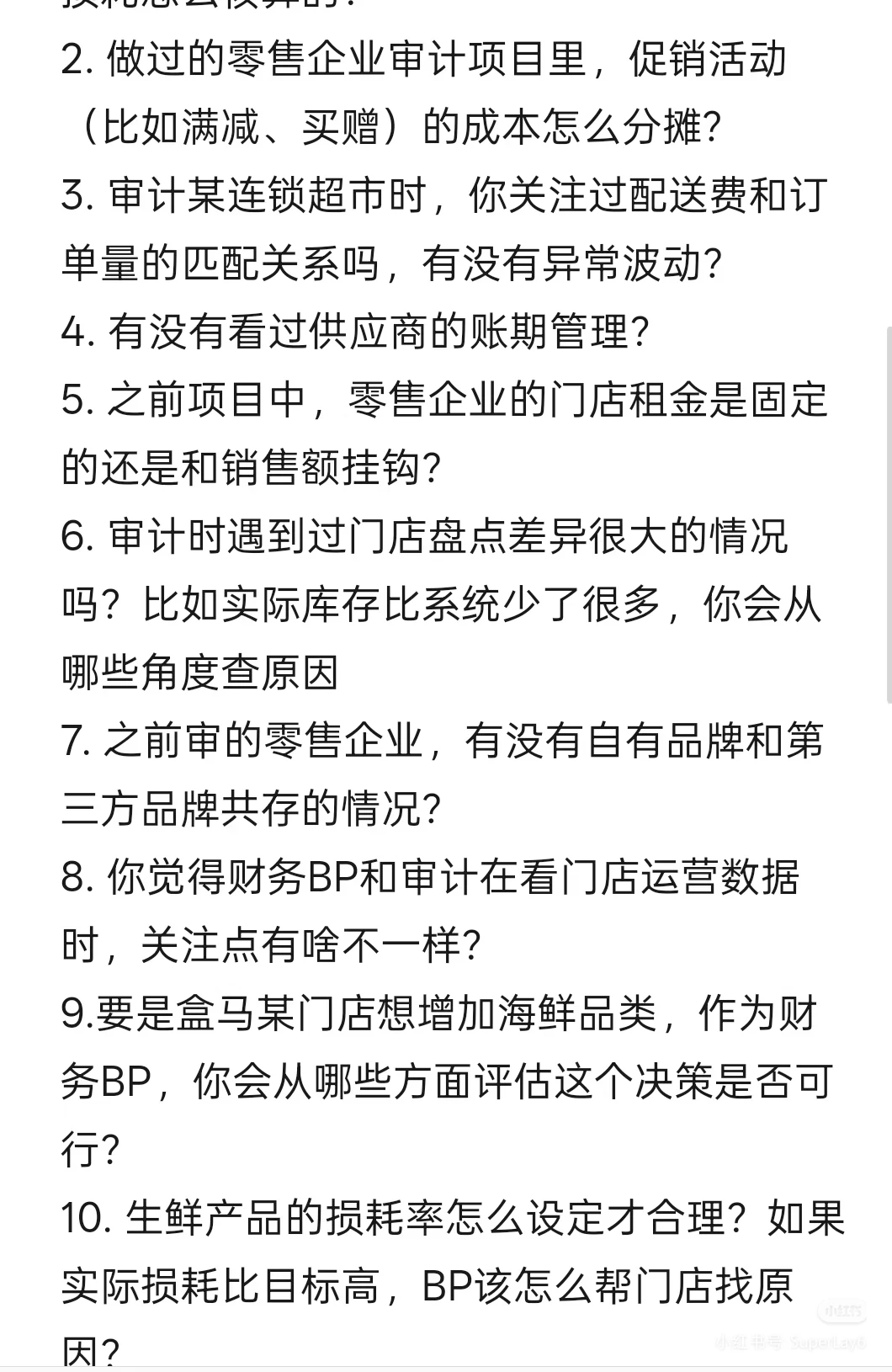 8. 你觉得财务BP和审计在看门店运营数据时,关注点有啥不一样?
