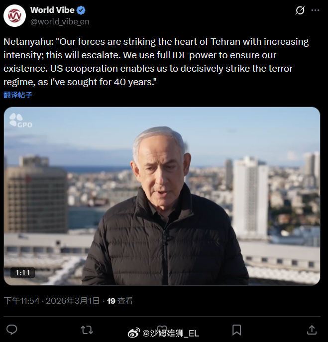 内塔尼亚胡声称,现在对伊朗的大规模军事侵略是自己“40年来一直想做的事情”。