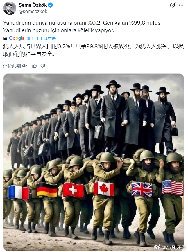 土耳其博主:犹太人只占世界人口的0.2%!其余99.8%的人被奴役,为犹太人服务,以换取他们的和平与安全。伊朗前总统内贾德遇袭身亡中东全面战争一触即发以色列对伊新一轮空袭