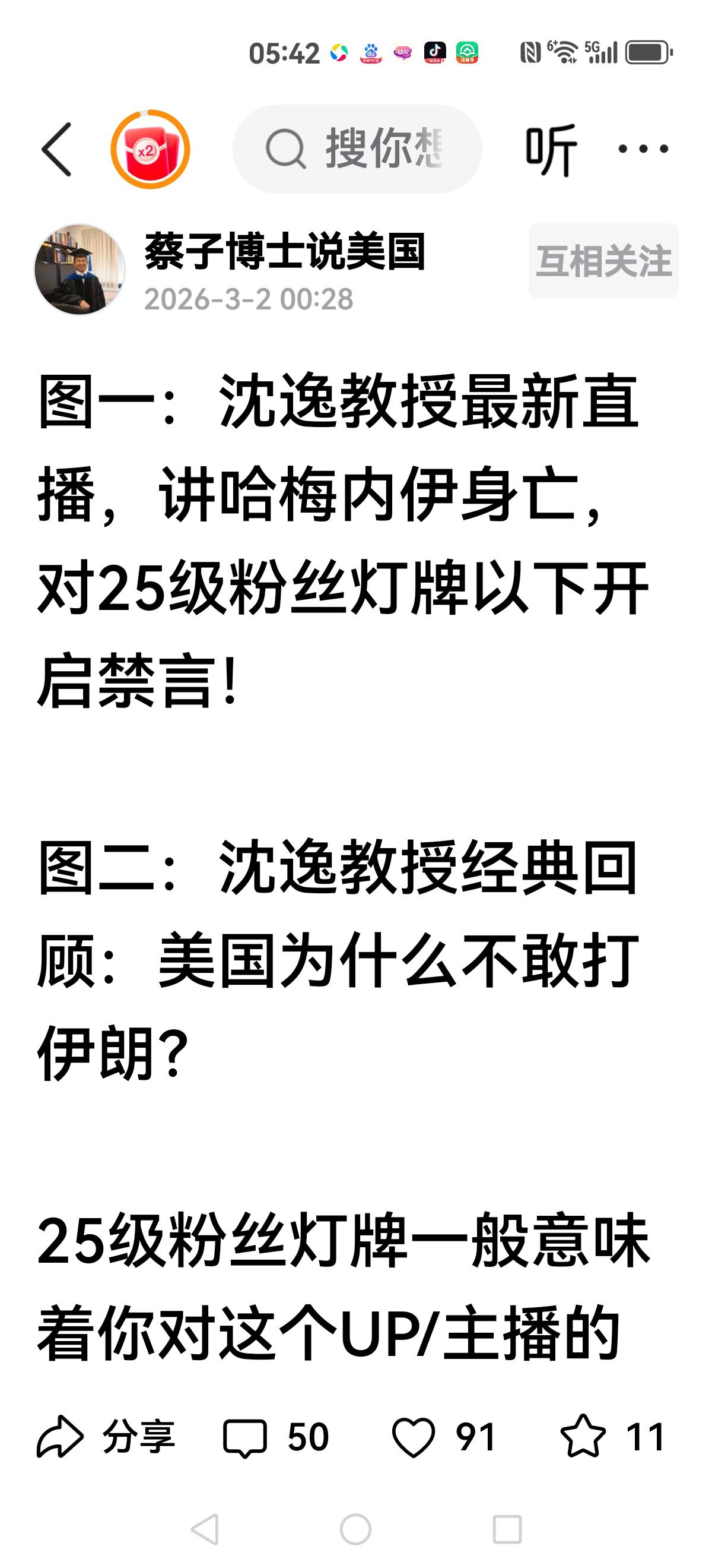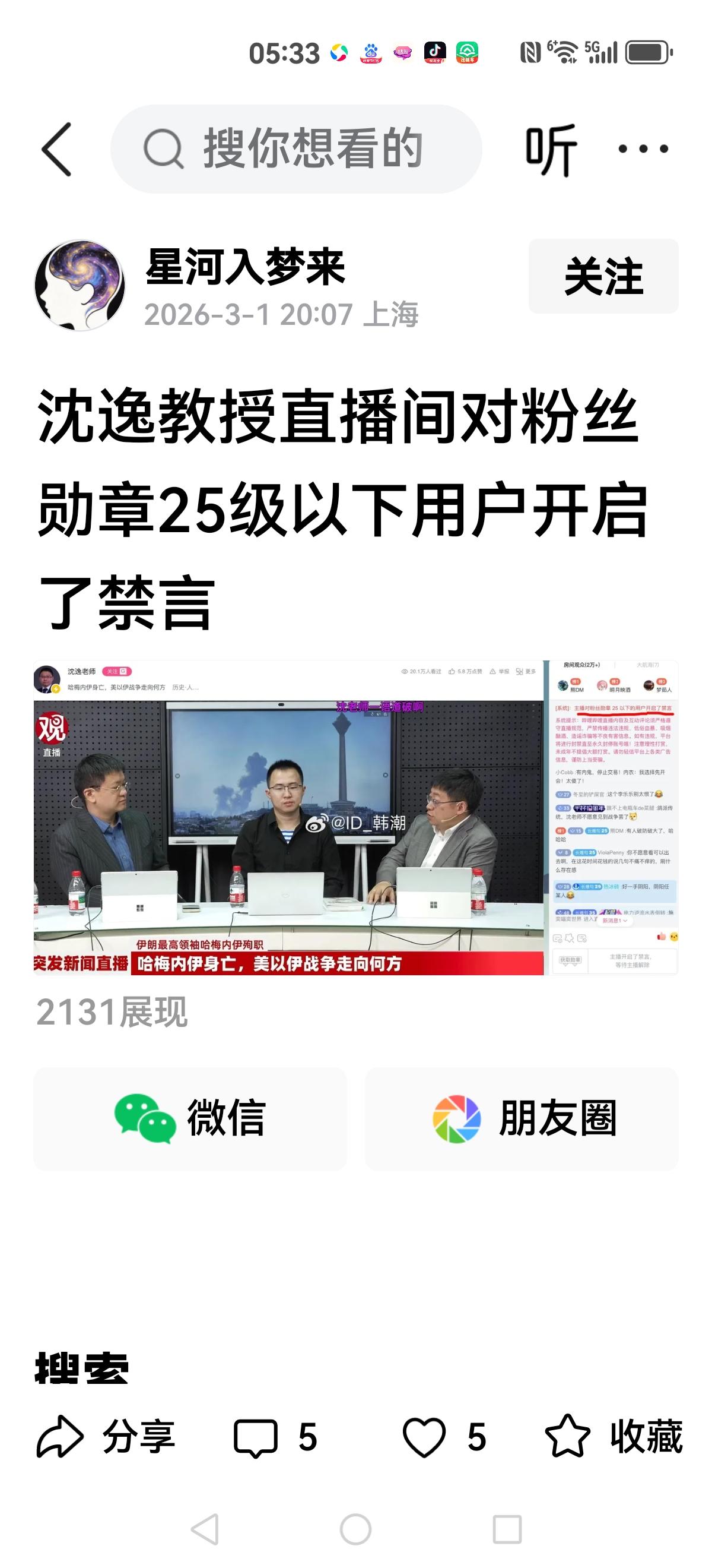 【沈逸:25级灯牌才能说话】 有人发现在沈逸直播间,只有25级灯牌的人才能发言,25级灯牌以下全部禁言。 据资深人士分析25级灯牌都是真金白银支持沈逸,而且几乎是每场必到。 看来与沈逸心连心,发言比较放心,25级以下有可能不忠心,但门槛到25级是不是太高了? 也有人说他在微博直播上,经常挂人,营造气氛,我估计是胡说八道。