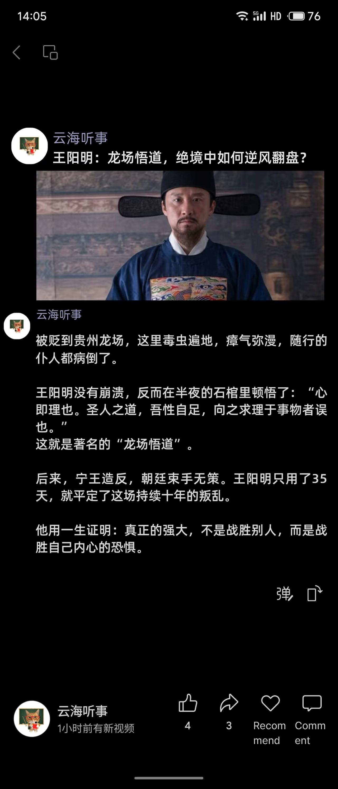 天南地北大拜年王阳明被贬龙场,于绝境中悟出“心即理”,后仅用35天平定宁王十年叛乱,诠释了战胜内心恐惧才是真正的强大。