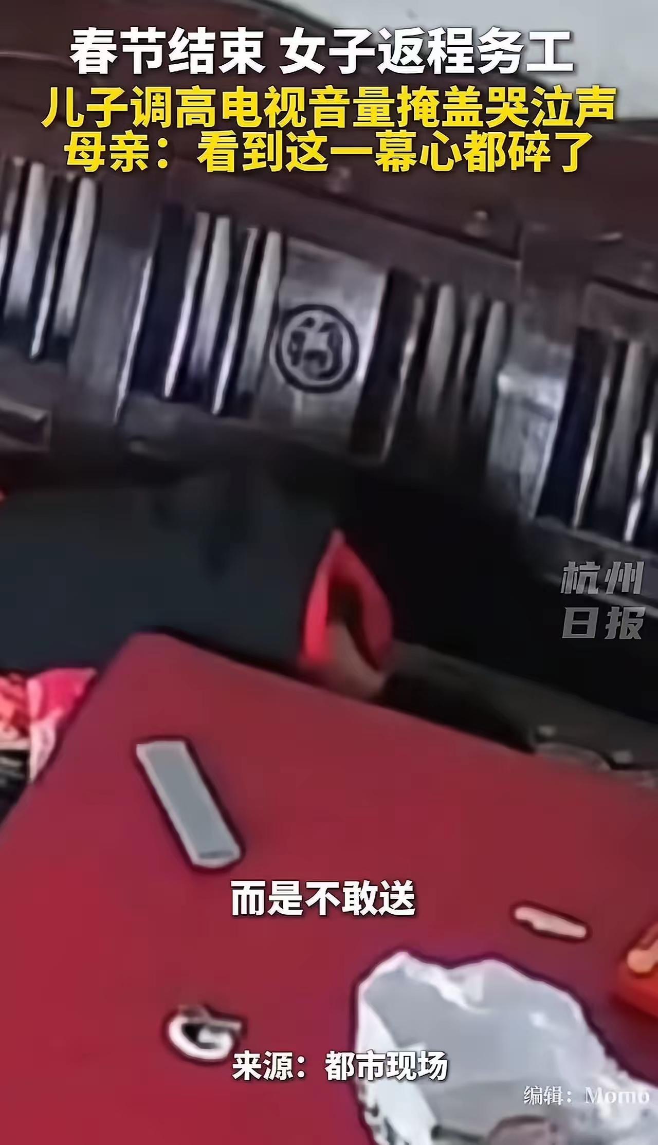 这是一个真实而沉重的故事,触动了许多人的心弦。阿燕作为一位母亲,在生活和亲情之间艰难抉择的无奈,反映出广大留守儿童家庭的普遍困境和社会的隐痛。 故事核心与情感解析: 母亲的无奈与深情 阿燕为了家庭的生计远赴千里外的城市打工,这种选择是为了更好的生活保障,却意味着与儿子长期分离。她内心的失落与心碎,是无数外出务工父母的真实写照。她误以为儿子无所谓、不在乎,最终通过监控发现儿子为掩饰哭泣而调高电视音量的情景,令人泪目又心疼。 留守儿童的心理状态 孩子早熟且懂事的伪装,暴露出他们内心深处的孤独与恐惧。孩子知道哭闹无法留住父母,只能选择隐藏情绪,表面“不在乎”,实则心如刀绞。这样的心理创伤往往被忽视,却可能带来长期的负面影响。 现实的艰难抉择——“鱼和熊掌不可兼得” 经济压力(房贷、车贷、医疗、教育等)使得父母不得不远赴他乡打工,陪伴与赚钱成了无法兼顾的矛盾。即便心中多想留在孩子身边,也被现实逼得不得不做出这样痛苦的选择。 社会与家庭的责任 正如评语中指出,社会不能只看到父母的牺牲和物质供给,而忽视孩子精神和心理的需求。父母的陪伴、关怀和精神支持,是任何物质都不能替代的部分。 对社会的启示与呼吁: 完善儿童关爱体系 加强对留守儿童的心理健康关注,建立有效的心理辅导和支持系统,缓解孩子的孤独和情绪问题。 改善外出务工家庭的条件 推动城乡一体化发展,增加本地就业机会,减少因经济原因的长时间亲子分离。 父母与孩子间的沟通 即使无法时时陪伴,也要做好情感沟通,让孩子明白父母的心,减少误会和恐惧。 社会的包容与理解 降低对留守家庭的偏见和误解,给予更多理解和支持。 总结: 这个故事深刻地反映了经济发展阶段中国农村家庭结构和儿童心理的双重矛盾。它呼唤社会不断完善关爱体系,也提醒每一个打工父母尽可能平衡生活和亲情。只有这样,才能最大程度减轻像阿燕和她儿子这样家庭的心灵创伤,让“鱼”和“熊掌”不再成为两难选择,而能更好地融合在一起。愿所有艰辛奋斗的父母和留守孩子们,最终都能实现温暖的团聚和幸福的生活。父母的心酸故事 感人心灵故事