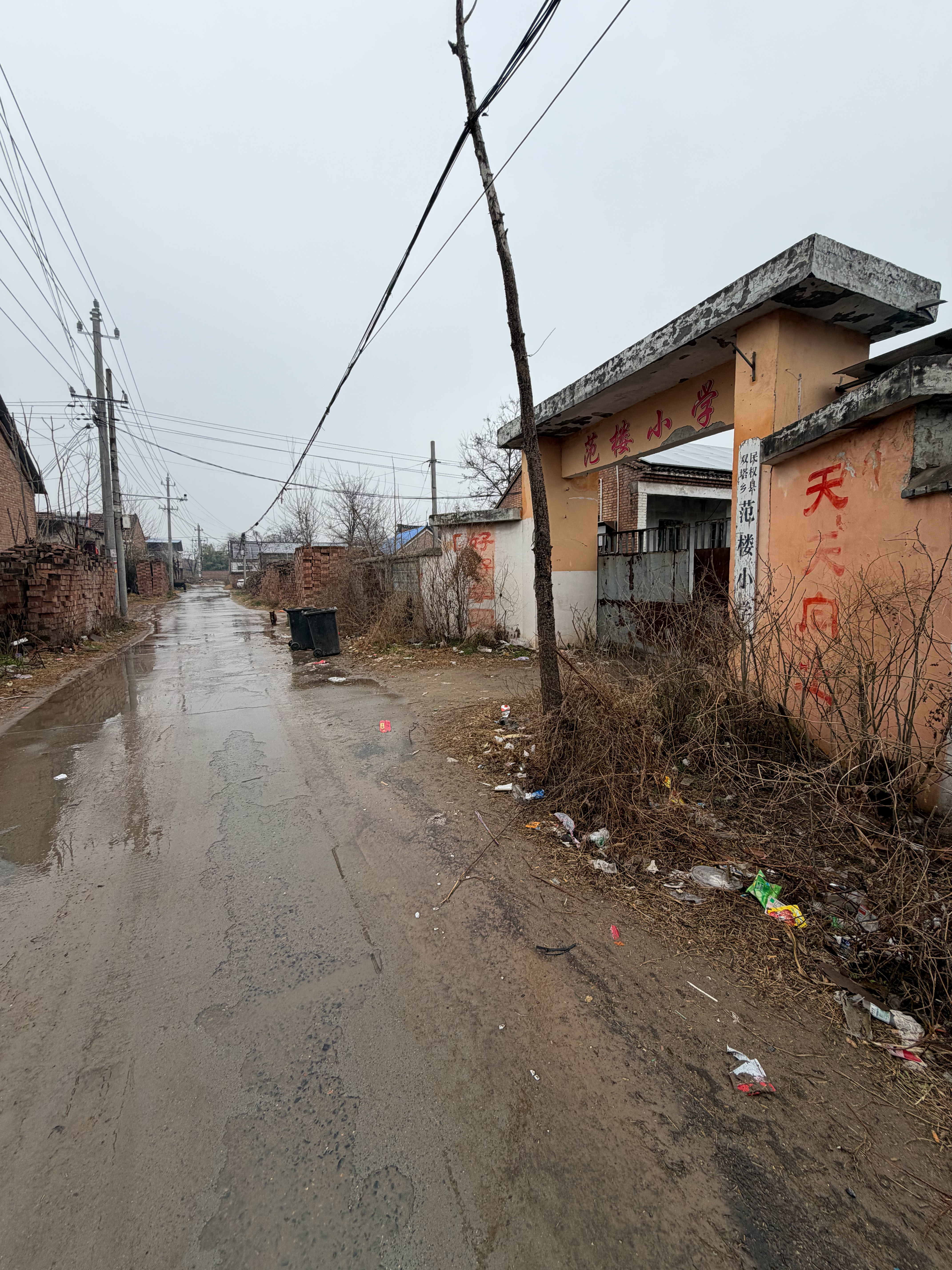 村里的主要大路是有铺水泥路的, 通往每家的门口的小路是没有铺的