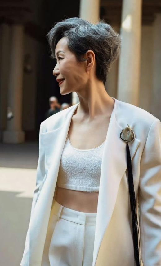 叶童不愧是模特出身,即使后来当了演员也一直维持自己的身材管理。六十多岁的人,气质