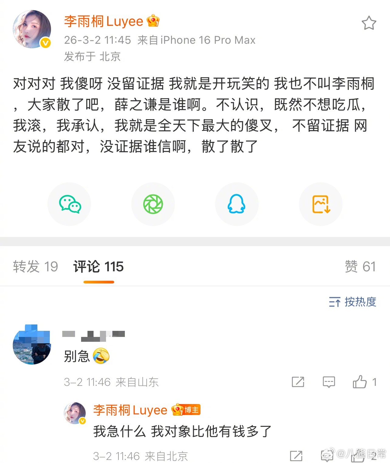 李雨桐艾特薛之谦说今天要一个个公开所有真相