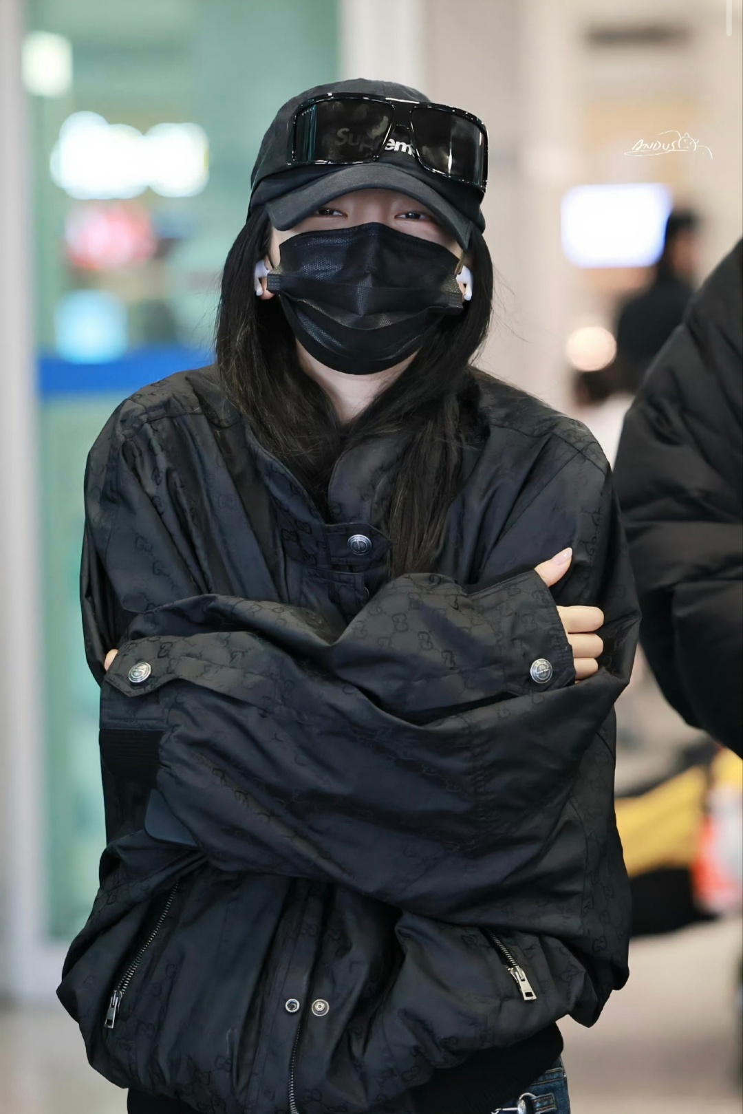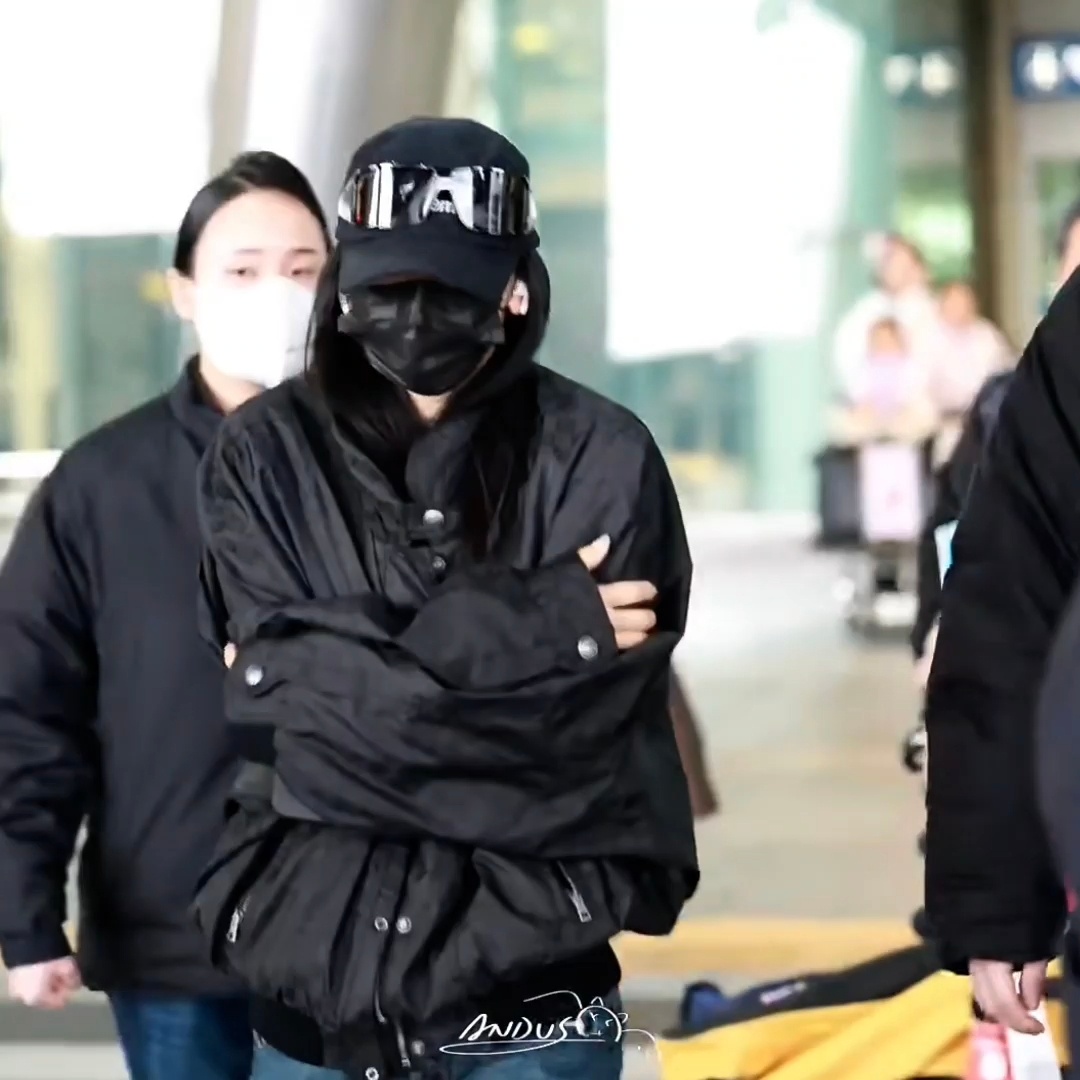 怕冷的宁宁就这么毛茸茸的把自己裹起来宁艺卓仁川机场到达