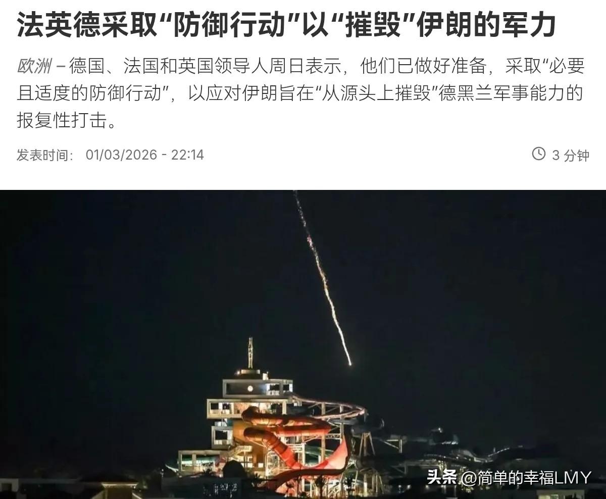 英法德三国也下场了,难怪这几个国家对美以的行动不发一语! 3月2日,根据法新社报道,德国、法国和英国领导人周日放话,已准备好采取“必要且适度的防御行动”,应对伊朗旨在摧毁德黑兰军事能力的报复性打击。他们还警告伊朗,会出手捍卫自身及地区盟友的利益。 这三国的表态,背后藏着不少算计。其一,在伊朗问题上,英法德向来跟美国步调相近。若此时缩着不动,既怕得罪美国,又怕在中东事务中被甩在一边,落个边缘化的下场。找个由头加入战局,也算顺势而为。 其二,伊朗的报复确实波及了不少地方。在英法德看来,伊朗这反应有点“过了头”,超出了他们能接受的范围。 其三,这三国本就想压一压伊朗,不让它成了地区霸主。眼下美以动手,正是削弱伊朗的好机会。更别说伊朗封锁霍尔木兹海峡,直接碰了欧洲的能源安全红线——这可是欧洲绝不能忍的。 这么一来,面对这场由美以挑起来的战争,欧洲这几个核心国家算是彻底撕下了中立调停的面具,一头扎进了美以的阵营。 这就不难理解了,为何他们对美以的打击装聋作哑,不置一词,反倒把伊朗的报复性反击说成“过度又鲁莽”,还言辞凿凿地谴责。这三国的做派,再次印证了那句老话:规矩都是为自己利益定的。 欧洲主要国家在战略上,终究还是美国的“跟班”。说起来,欧洲跟中东的能源往来密切,霍尔木兹海峡掐着欧洲能源的“脖子”。伊朗一封锁,欧洲的油气供应就得紧张,物价、民生都得受影响。 他们跳出来站队美以,多少也带着保住自家能源饭碗的心思。可话说回来,伊朗的报复,根源还是美以先动的手。“人不犯我,我不犯人”,若不是美以步步紧逼,伊朗何至于如此? 英法德只盯着伊朗的反击“过度”,却对美以的挑衅视而不见,这算哪门子的公道?说到底,还是利益在作祟。跟着美国走,既能保住跟美国的盟友关系,又能借美以的手削弱伊朗,顺带维护自己的能源利益。 算盘打得噼啪响,可忘了“唇亡齿寒”的道理。中东局势乱下去,欧洲真能独善其身?伊朗要是被逼到墙角,难保不会有更激烈的反应。 霍尔木兹海峡的僵局持续,欧洲能源成本高涨是板上钉钉的事。到时候,老百姓怨声载道,经济压力陡增,英法德怕是有苦头吃。 这三国的选择,看似精明,实则短视。把宝全押在美以身上,跟着别人的节奏起舞,最终只会被牵着鼻子走。战略上依附美国,看似能得些好处,可一旦美国自顾不暇,或者利益冲突,最先被牺牲的,往往是这些“跟班”。 中东的水太深,这场仗一旦扩大,谁也别想全身而退。英法德放弃中立,选择站队,无疑是给本就紧张的局势火上浇油。到头来,怕是搬起石头砸了自己的脚。