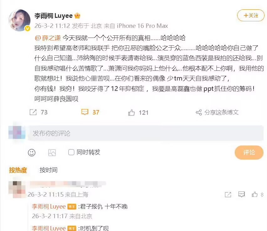 李雨桐喊话薛之谦终于懂为啥明星都不敢公开恋爱,感情一崩事业全受影响,分手直接成永