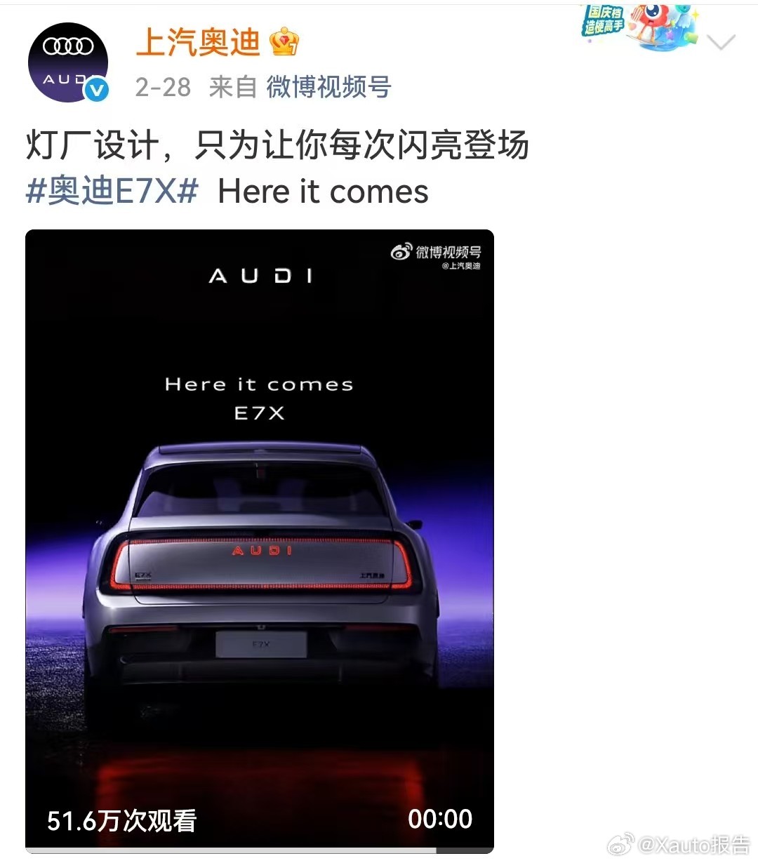 上汽奥迪AUDI E7X新车官宣