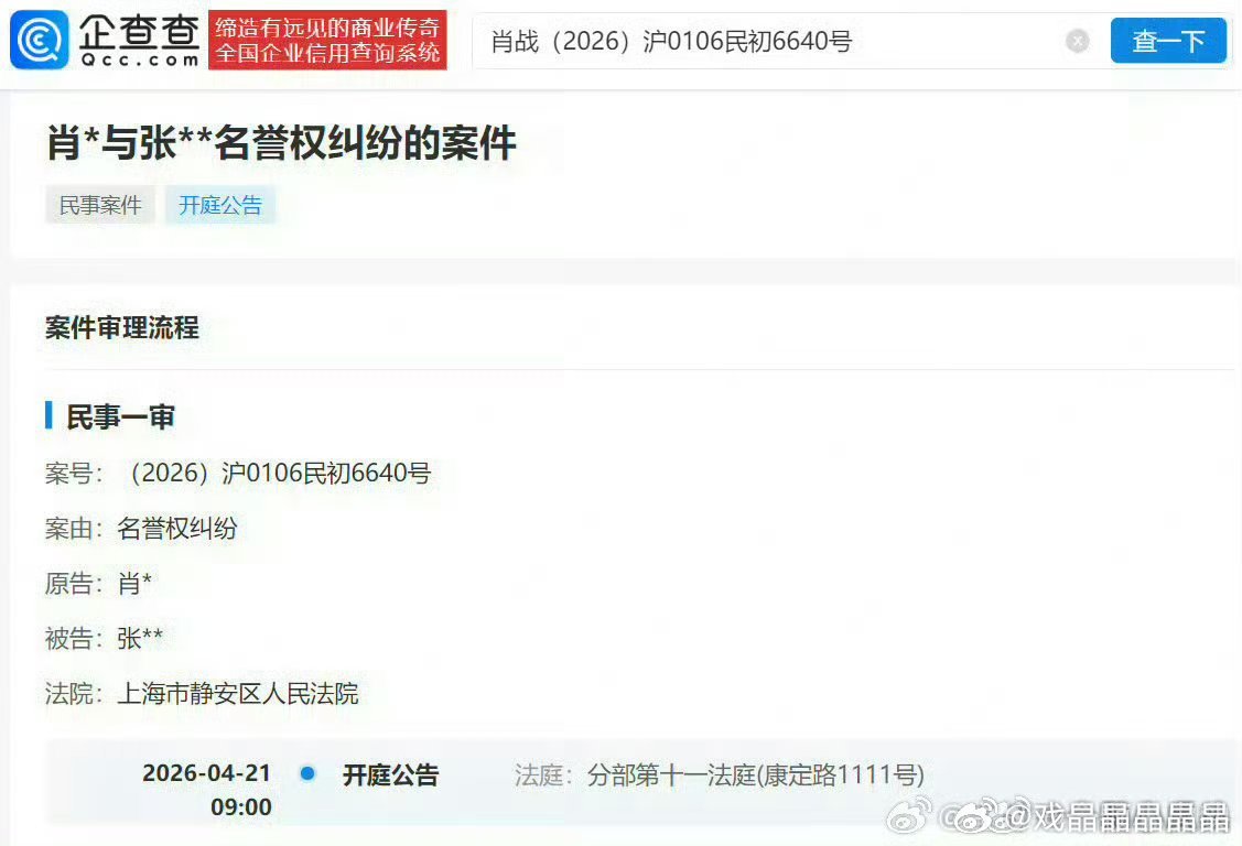 肖战维权案最新进展,对张某某的起诉将于4月21日在上海市静安区人民法院开庭!支持肖战合理合法维权!