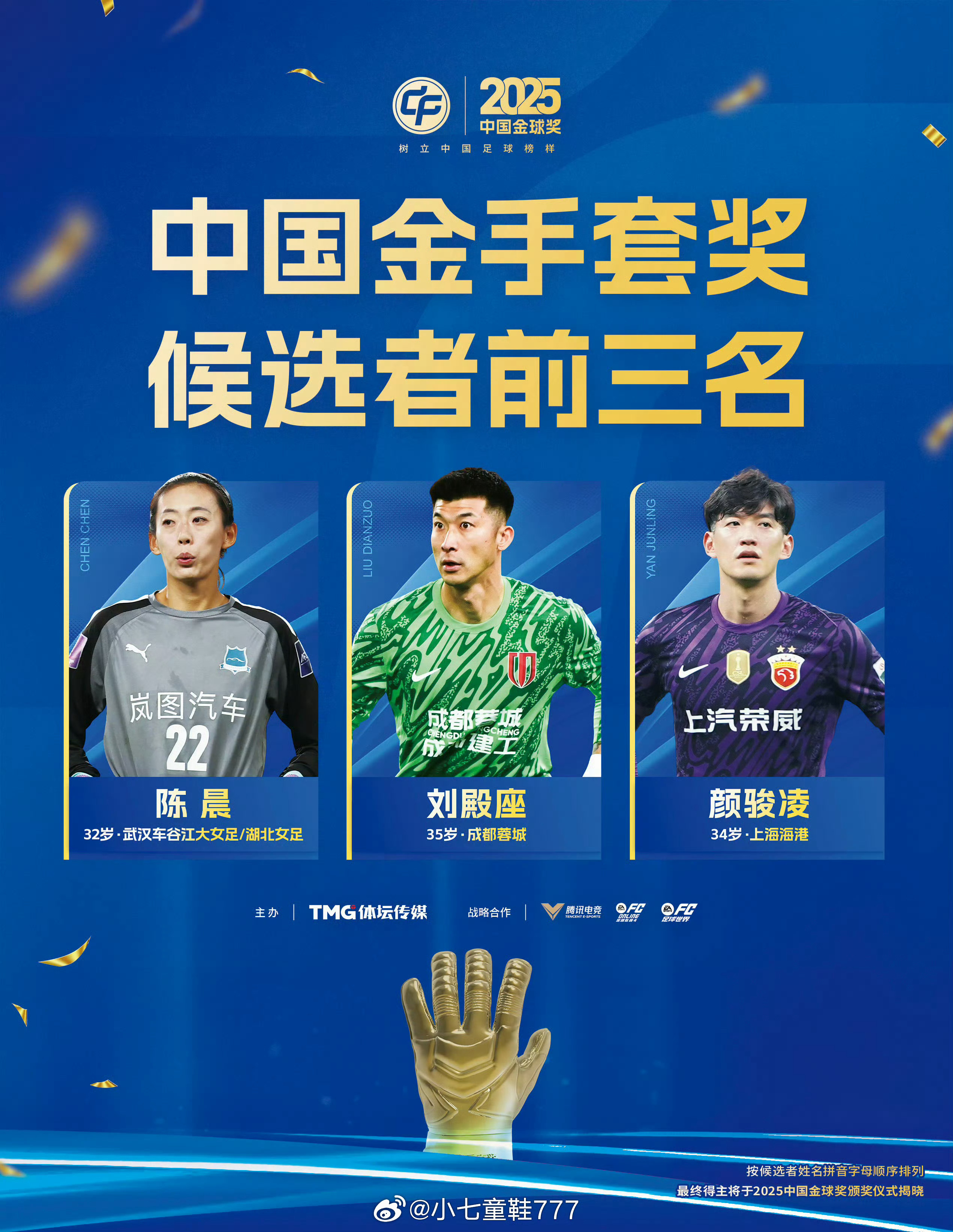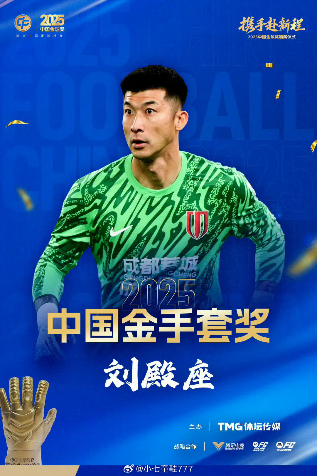 成都蓉城门将刘殿座获得2025中国金手套奖。上赛季刘殿座为成都蓉城在中超联赛出场27场次,贡献10次零封,帮助球队获得中超联赛第3名。