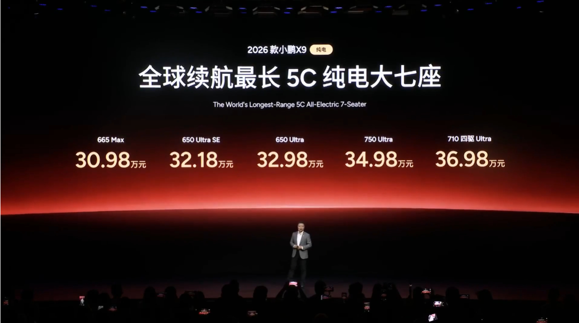 七座布局,智能大七座第二代VLA三排电动折叠、二排带过道零重力座椅、主动后轮转向和双腔空悬主动降噪、9安全气囊、零重力座椅气囊5C充电、最大续航750km,8分钟补能 400km,电耗百公里15.9kWh基础参数:5316*1988*1785mm,轴距3160mm(中大型MPV)驱动形式:纯电/增程(单电机前驱/四驱)功率:235kW续航:650-750km平台:800V充电效率:5C电池容量:94.8kWh电池类型:磷酸铁锂智驾硬件:智驾高清摄像头/毫米波雷达/超声波雷达/OMS摄像头智驾芯片:图灵AI芯片座舱芯片:SA8295P轮毂尺寸:19/20(可选)颜色:外银/白/黑/紫/青/灰,内灰/咖/棕屏幕:10.25液晶仪表/17.3中控/21.4娱乐屏/HUD座椅:真皮座椅(可选Nappa)/主副驾电调加热通风按摩/二排零重力+电调按摩通风/三排加热其他配置:220v车内插座/50w无线充*4/哨兵模式/行车影像/360摄像头/650km续航655 Max 30.98万1*图灵/自动泊车/遥控泊车650 Ultra SE 32.18万2*图灵/二代VLA650 Ultra 32.98万3*图灵/VLM私人官家750km续航750 Ultra 34.98万710 四驱 Ultra 36.98万冰雪稳定系统/双电机四驱增程版1602 Ultra SE32.18万教授觉得价格真的也越来越低了,最低起步价都杀到31万的区间了,考虑到今年的税,也就是最低1.5万,最大也不到2万的税,价格还是很香的。虽然说锂电、芯片最近都在降价,但小鹏还是在降价呀。要是对比腾势D9的车型,小鹏还是有优势啊。配置方面,需要VLA的话,32.18万的事不错的配置,不差那么点钱就直接650U的带VLM的配置。750续航按需选购即可。除了低配,基本都推荐。