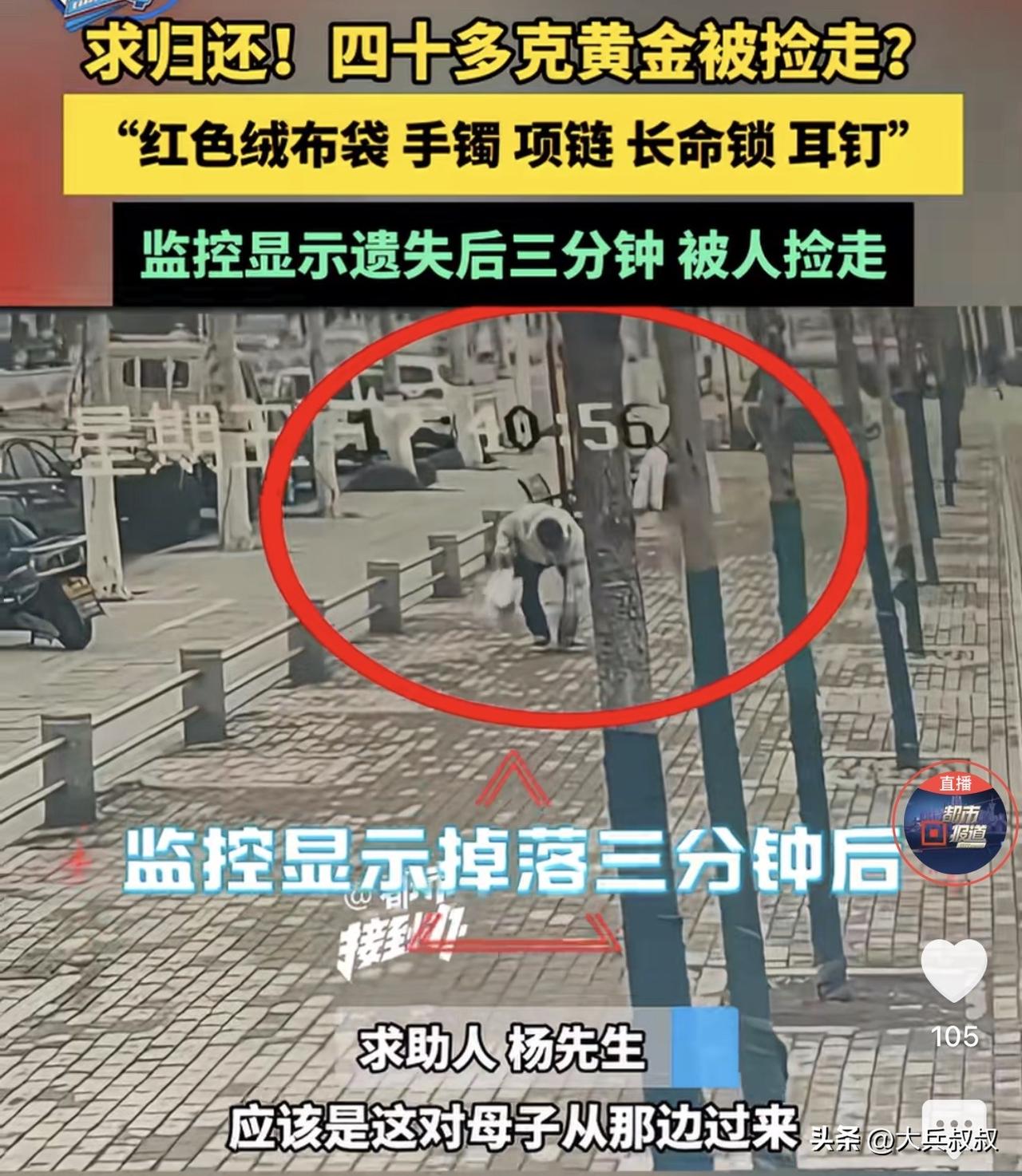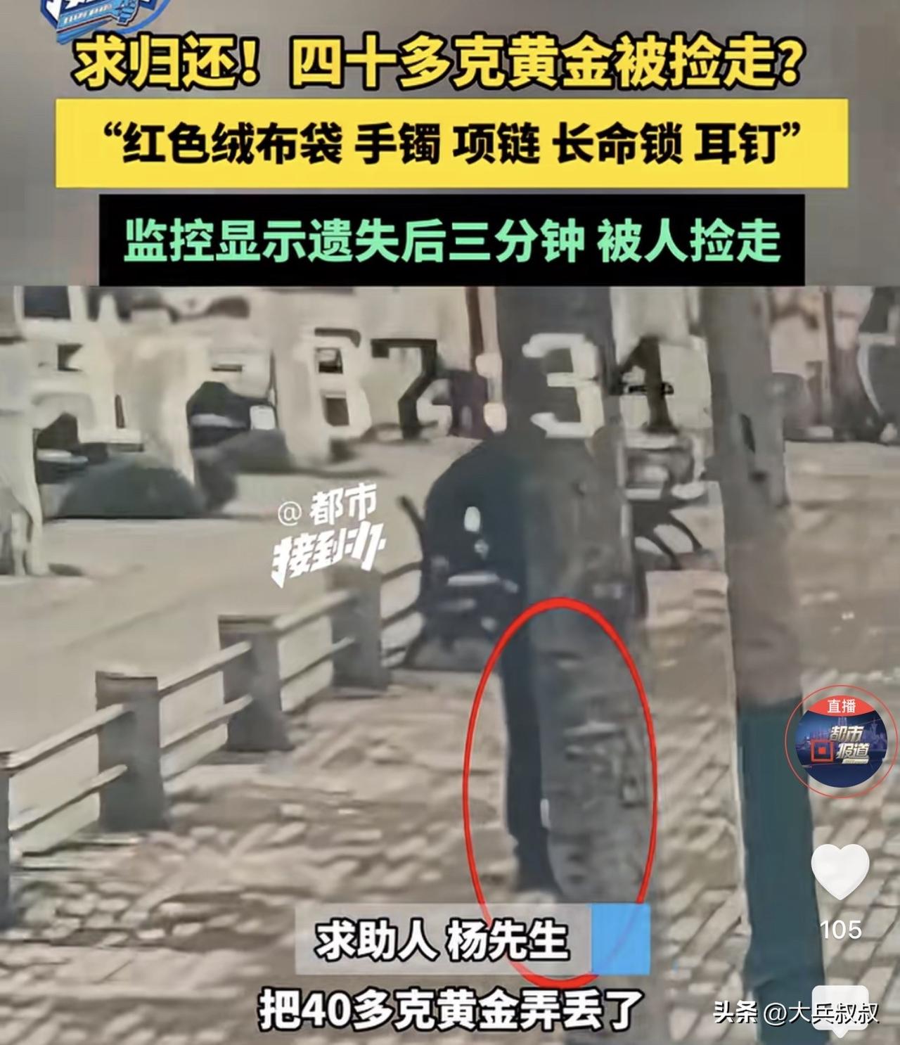 河南许昌,一男子父亲因生病住院,妻子将结婚时的三金拿出来交给丈夫让其卖掉抵医疗费,万万没想到,男子带着父亲看完病,在中午吃饭的时候不慎将这40多克的黄金弄丢了,事后民警调取路边监控发现,在男子丢失不到3分钟就被人捡走了,男子含泪恳求拾得者能够归还首饰。 据悉,杨先生的父亲因为生了病需要手术治疗,但是考虑到医疗费用比较高,所以,杨先生的媳妇毫不犹豫把结婚时候买的三金拿了出来,希望这些首饰当了以后能够交上医疗费。 其中,就包含一个20多克的手镯,还有一个项链以及孩子百岁的长命锁,两个加起来也有20多克,一共是40多克。 2月27日这天,杨先生带着父亲去看病,这40多克的黄金就被小心翼翼的包在一个红色的布袋中,打算借机去黄金回收店卖掉。 然而,因为看完病已经临近中午了,所以,杨先生就在附近停了车,先打算带父亲吃完饭再说,然而,就在杨先生刚下车掏口袋的时候,这个布袋就掉在了地上,然而,杨先生却没有丝毫的察觉。 到饭馆吃完饭后,杨先生这才发现布袋不见了,寻找无果后便报了警,因为掉落的地点有监控,所以,警方很快就发现了拾得人,原来在杨先生刚刚掉在地上不到三分钟,就有一男一女走了过来,男子捡起之后看了看,随后便塞进了兜里,随后这对男女就走到了马路对面坐上车离开了。 因为无法看到两人坐车的车牌,所以警方正在进行人脸识别,希望能够锁定拾得者,对此,杨先生也是懊悔不已,他希望拾得者能够返还这笔救命钱,因为老人确实需要这笔钱来做手术。 为此,杨先生找到了媒体帮办,希望帮忙找回首饰,因为现场监控只是录到一男子捡起了一个红色的布袋,对此帮办工作人员提出质疑,你怎么能证明布袋里是40多克的黄金。 杨先生眼含热泪的表示,我用自己的人格来保证。 事发后,有网友表示,现在到处是监控,希望捡到的人能及时退回来吧,不要给自己引来不必要的麻烦,到时候人家找上门来,就尴尬了。 还有网友说,40多克,现在价值五六万吧,五六万真的很考验一个人,尤其是四周无人的情况下。 也有人说,人家是捡的不是偷的,退还是情分,不还才是本分。 那么,拾得者有没有义务退还呢? 其实,民法典第三百一十四条规定,拾得遗失物,应当返还权利人。拾得人应当及时通知权利人领取,或者送交公安等有关部门。 所以说,拾得者并没有权利占有拾得物,而是要交给有关部门或者通知权利人领取。 如果是据为己有,那么这就是侵占行为,即以非法占有为目的,实施将代为保管的他人财物、遗忘物或者埋藏物非法占为己有,就是侵占。但是是否构成犯罪,就要看侵占的数额是否达到数额较大的标准了。 根据《关于八种侵犯财产犯罪数额认定标准的通知》提到,侵占罪,数额较大为一万元以上;数额巨大为十万元以上。 本案中涉及的数额是40多克黄金,价值在四五万,因此已经达到了数额较大的标准,因此,如果在确定了拾得者之后,拾得者拒不归还的,那么,拾得者是要付出刑事代价的。 拾金不昧是我们传统的美德,但是在巨大的利益诱惑之下,确实考验着每个人的人性。 对此,你对本案有什么看法? —————————— 关注我,带你评析法律热点,关注冷暖人生。 文章原创,抄袭必究